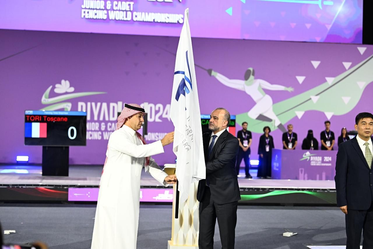 وسلم رئيس الاتحاد السعودي للمبارزة احمد الصبان ممثل جمهورية الصين الشعبية علم البطولة، حيث تستضيف النسخة القادمة من البطولة 2025 م وكرمت اللجنة المنظمة الجهات المشاركة في البطولة MOTUS والعربية ومستشفى الدكتور سليمان الحبيب و جورميه ونوفا و جمعية هدية عالم.