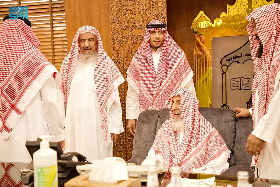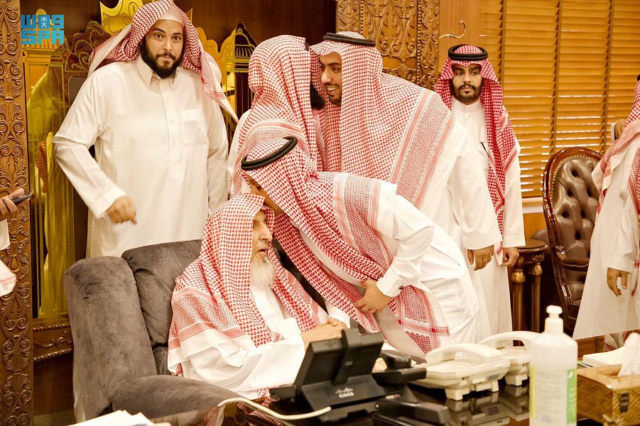 استقبل سماحة مفتي عام المملكة رئيس هيئة كبار العلماء والرئيس العام للبحوث العلمية والإفتاء الشيخ عبدالعزيز بن عبدالله آل الشيخ في مكتبه بالرئاسة اليوم المهنئين بعيد الفطر المبارك من منسوبي الرئاسة أصحاب المعالي والفضيلة ومديري الإدارات ورؤساء الأقسام والموظفين.