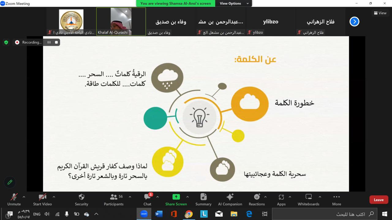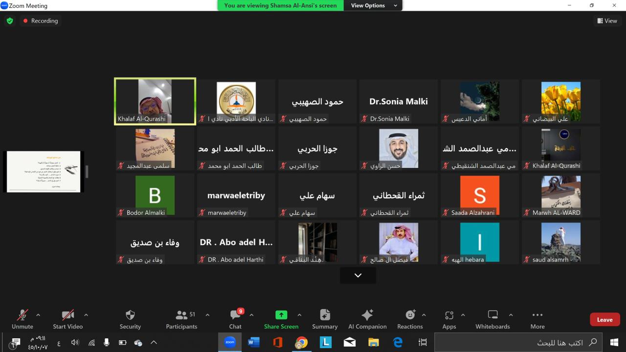 الزهراني شكر المدرب وفريق التنسيق والدعم والمتابعة على جهودهم التي كانت سببا بعد توفيق الله في نجاح الورشة.