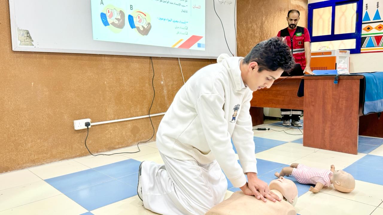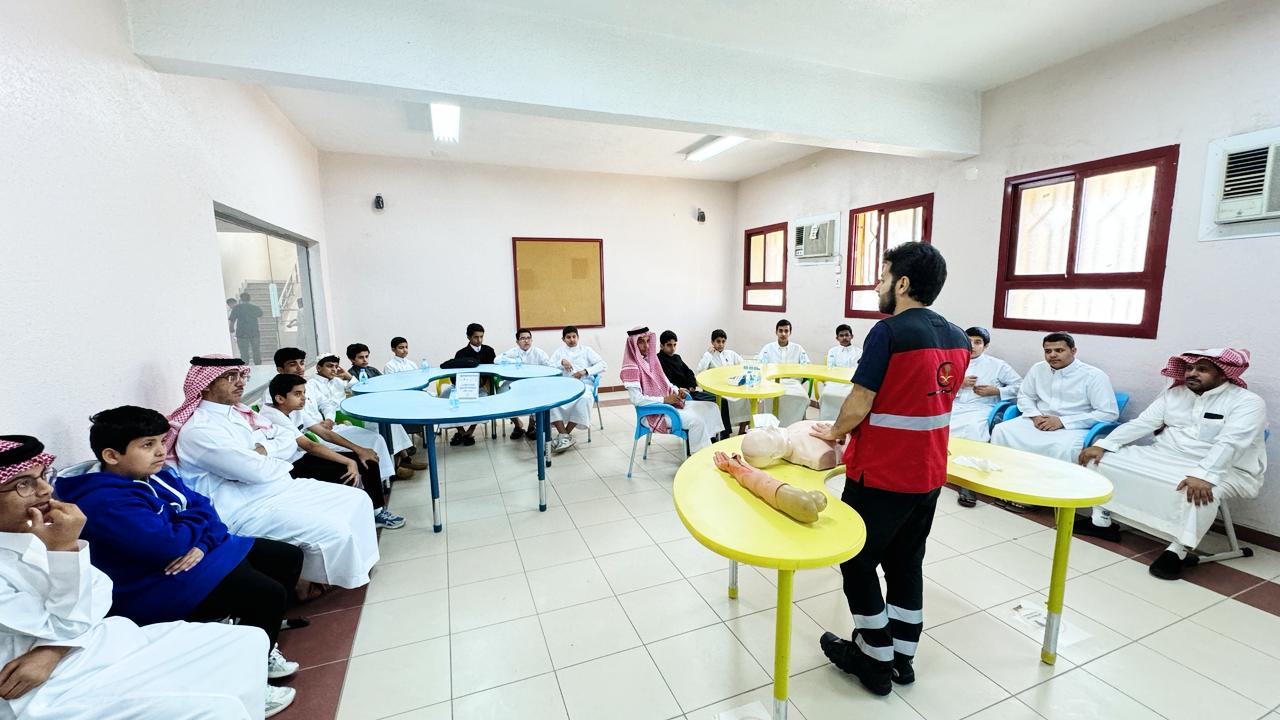 ويهدف البرنامج إلى تأهيل وتدريب الموجهين الصحيين والموجهات الصحيات والمعلمين والمعلمات والطلاب والطالبات في مدارس المنطقة ومحافظاتها على الإسعافات الأولية، إلى جانب نشر ثقافة الإسعافات في المجتمع المحلي.