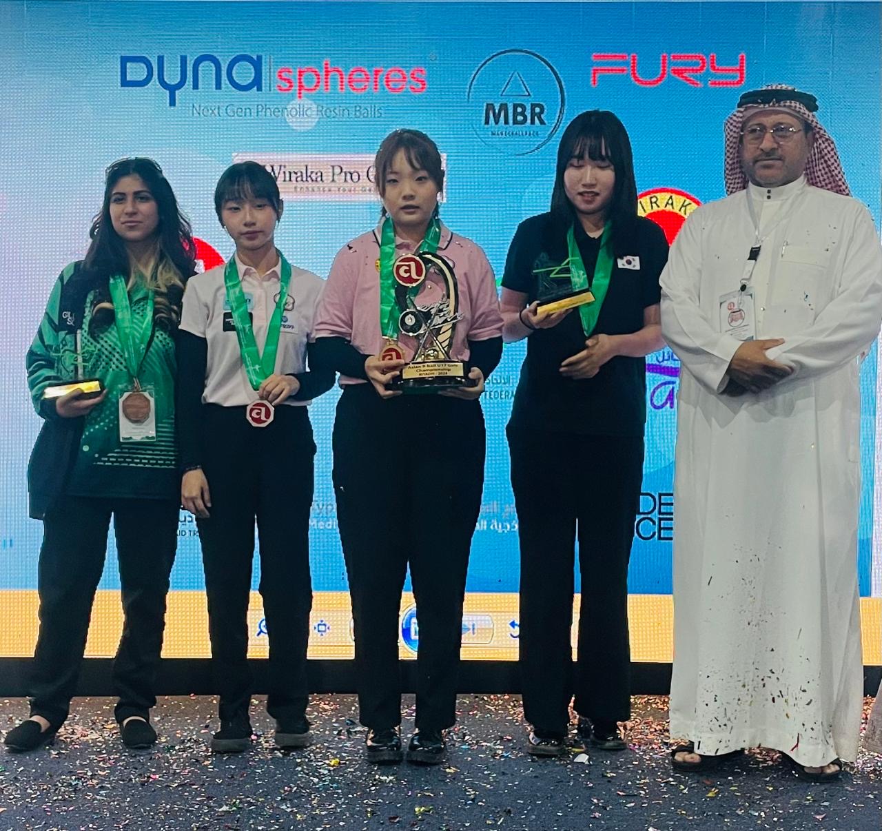 وانتزع لاعبات منتخب تايبيه الذهب والفضة في المنافسات حيث توجت لاعبة تايبيه وينق مينق بذهبية منافسات 9 كرات فتيات بعد فوزها في النهائي على مواطنتها جانق جاجا بنتيجة 2/5 وتوجت لاعبة المنتخب السعودي جود بخاري بالميدالية البرونزية كأول لاعبة سعودية وخليجية وعربية تحصل على ميدالية آسيوية وتوجت لاعبة منتخب كوريا الجنوبية هيو يولم بالمركز الرابع وفي منافسات 9 كرات سيدات توجت لاعبة منتخب تايبيه شو شن بالميدالية الذهبية بعد فوزها في النهائي على مواطنتها وي تيز بنتيجة 3/7 وحصلت لاعبة منتخب كوريا الجنوبية سيو سو على المركز الثالث ولاعبة منتخب اليابان كوهير شيرو على المركز الرابع.