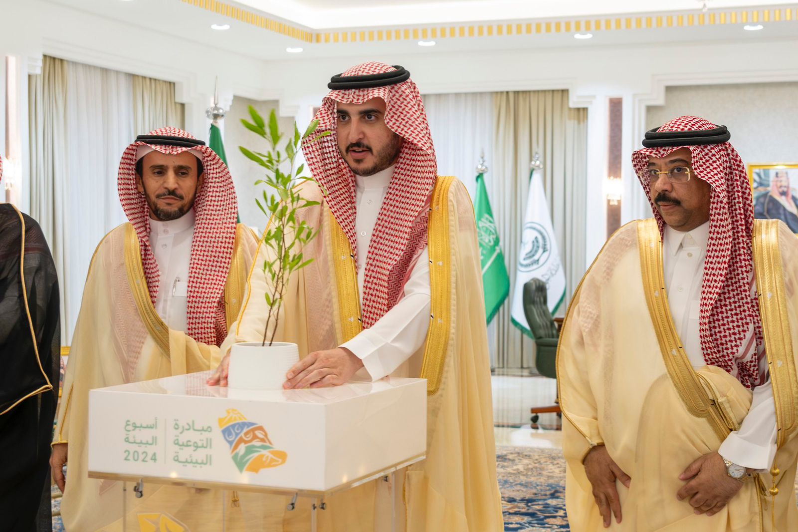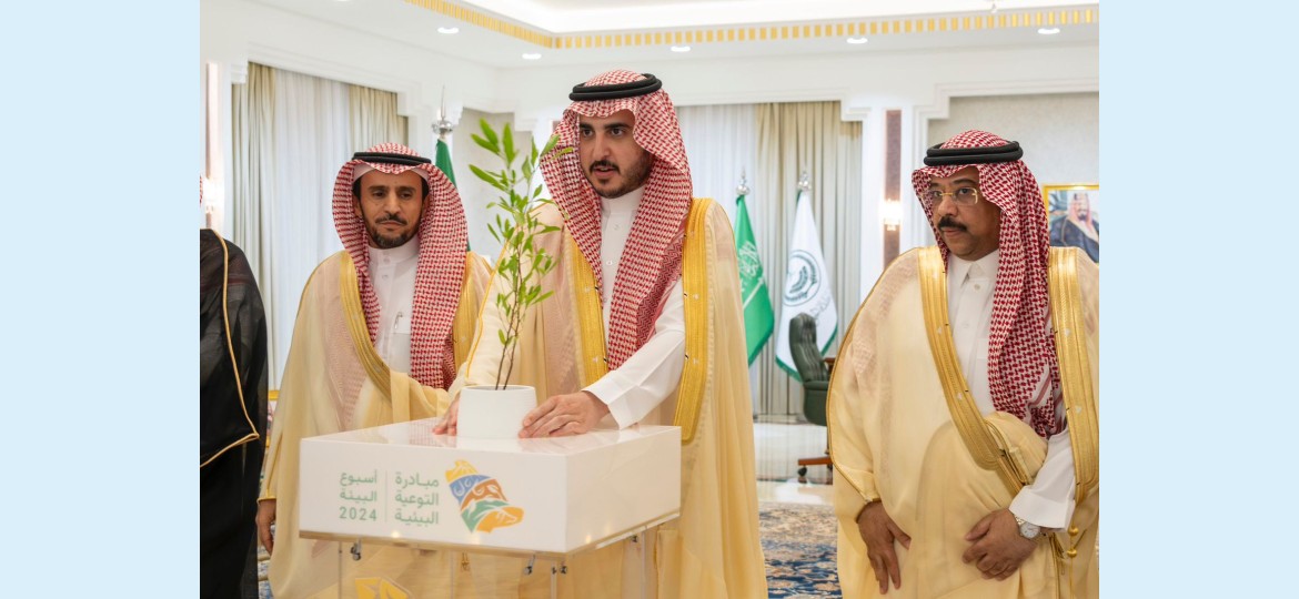 جاء ذلك خلال تدشين سموّه بمكتبه اليوم، أسبوع البيئة 2024 تحت شعار "تعرف بيئتك"، حيث قام سموّه بزراعة شتلة إيذانًا بإطلاق الفعاليات بالمنطقة، وذلك بحضور مدير فرع وزارة البيئة والمياه والزراعة بالمنطقة المهندس عبدالعزيز بن محمد الرجيعي، ومديري الجهات الحكومية المشاركة.