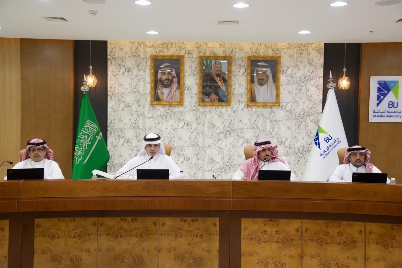 وفي بداية الجلسة رفع معالي رئيس الجامعة باسمه وباسم جميع منسوبي الجامعة، ومنسوباتها، وطلابها وطالباتها أسمى آيات التهاني والتبريكات لمقام خادم الحرمين الشريفين، وإلى صاحب السمو الملكي ولي العهد رئيس مجلس الوزراء وإلى صاحب السمو الملكي أمير منطقة الباحة -يحفظهم الله- بمناسبة خروج خادم الحرمين الشريفين – حفظه الله – بالصحة والعافية سائلاً الله لمقامه الكريم موفور الصحة والعافية.