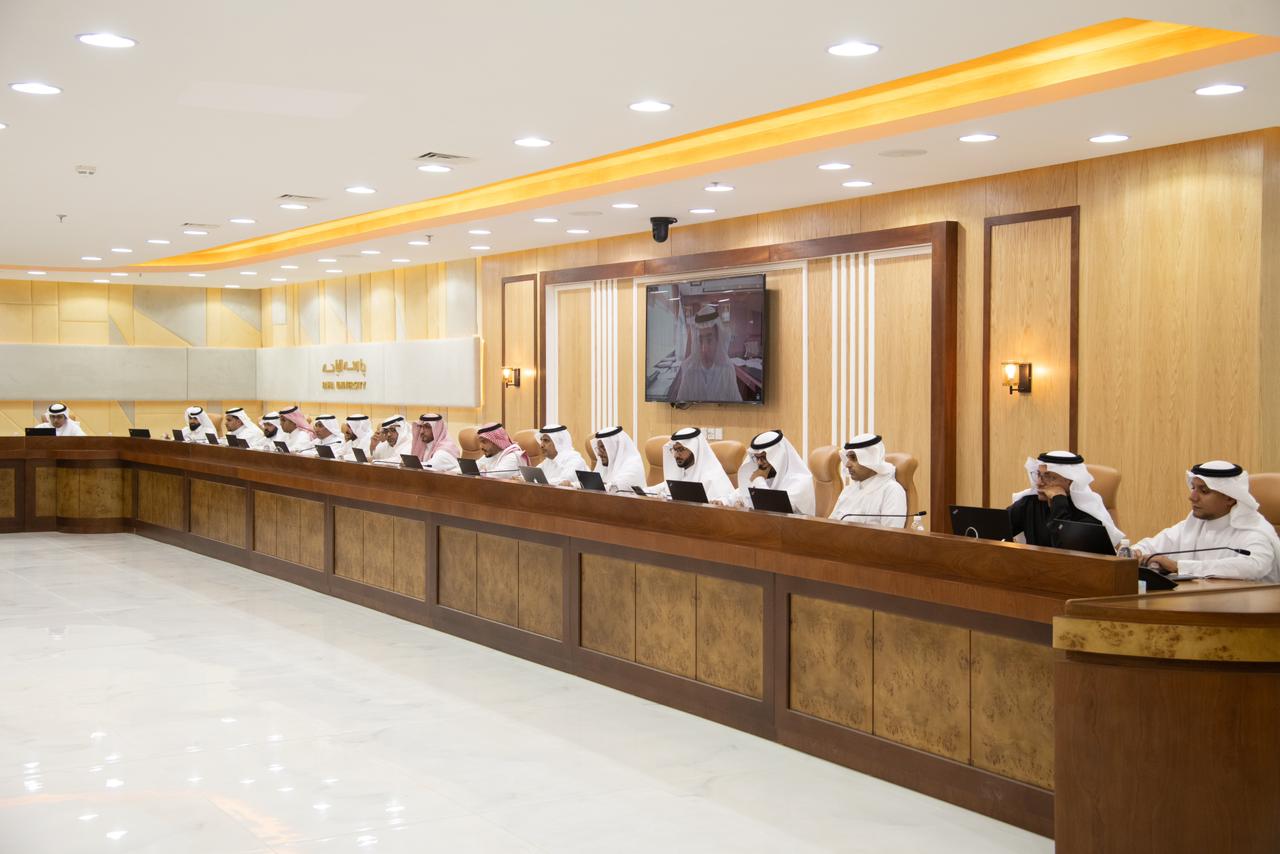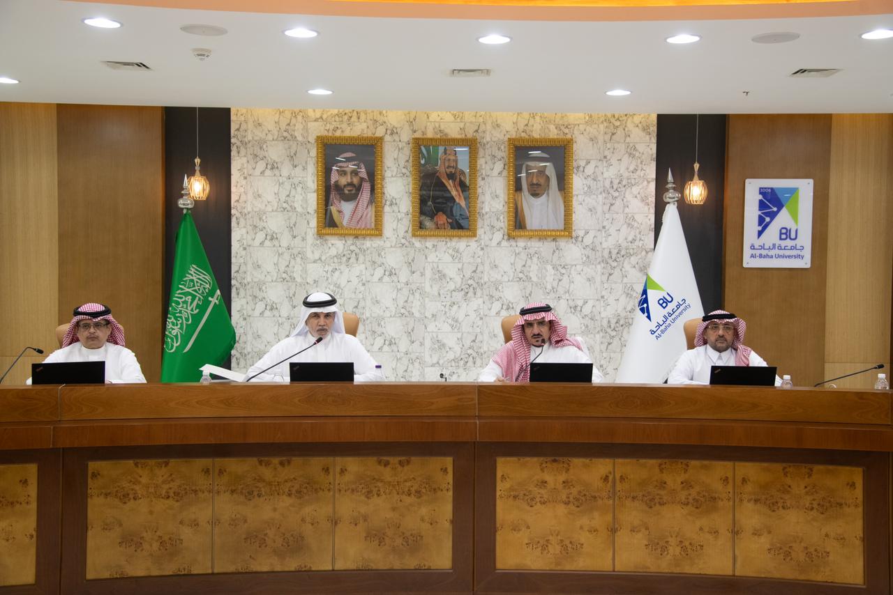 رأس معالي رئيس جامعة الباحة الأستاذ الدكتور عبدالله بن يحيى الحسين اليوم، اجتماع مجلس الجامعة في جلسته الثامنة للعام الجامعي 1445هـ، بحضور أعضاء المجلس كل من أمين عام مجلس شؤون الجامعات الدكتور بسام عبدالله البسام، ووكلاء الجامعة، وعمداء الكليات، وعمداء العمادات المساندة، بقاعة مجلس الجامعة بالمبنى الإداري بالمدينة الجامعية.