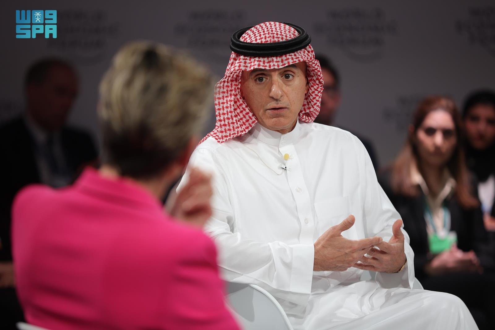 وقال الوزير الجبير:" نريد أن نشجع الشركات السعودية على المشاركة في النشاط المحلي والدولي اقتصادياً، وفيما يتعلق بمنطقة الشرق الأوسط وشمال أفريقيا فهي منطقة كبيرة ولكن إذا ركزنا على دول مجلس التعاون الخليجي ستلاحظون أننا تمكنا من جعل اقتصاداتنا أكثر تكاملاً وحققنا حرية التجارة وحركة البضائع والأفراد خلال السنوات الماضية وهذا أمر أدى إلى تداعيات إيجابية على المستوى التجاري والاستثماري ونتطلع إلى أن نتمكن من توسيع ذلك لكي يشمل مجمل منطقة الشرق الأوسط وشمال أفريقيا" مبيناً أن "جميع عوامل النجاح والازدهار متوفرة في المنطقة إلا أن التوترات فيها تعقد الأمور، لذلك من أهدافنا الرئيسية إنهاء التوترات في المنطقة لفتح المجال للتركيز على الأهم وهي: التنمية الاقتصادية والازدهار."