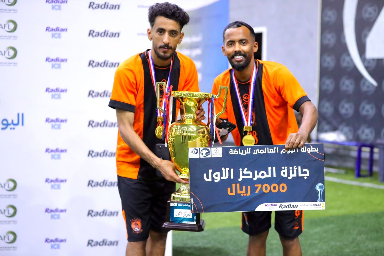وتوج الفرق الفائزة بالمركزين الاول والثاني لاعب الاتفاق السابق المخضرم جمعان الجمعان والمحلل الرياضي المهتم بالشؤن الكروية عبدالله المسند دعما منهم لمسيرة الرياضة وكرة القدم في المنطقة الشرقية ولشبابنا السعودي المتميز في جميع المجالات