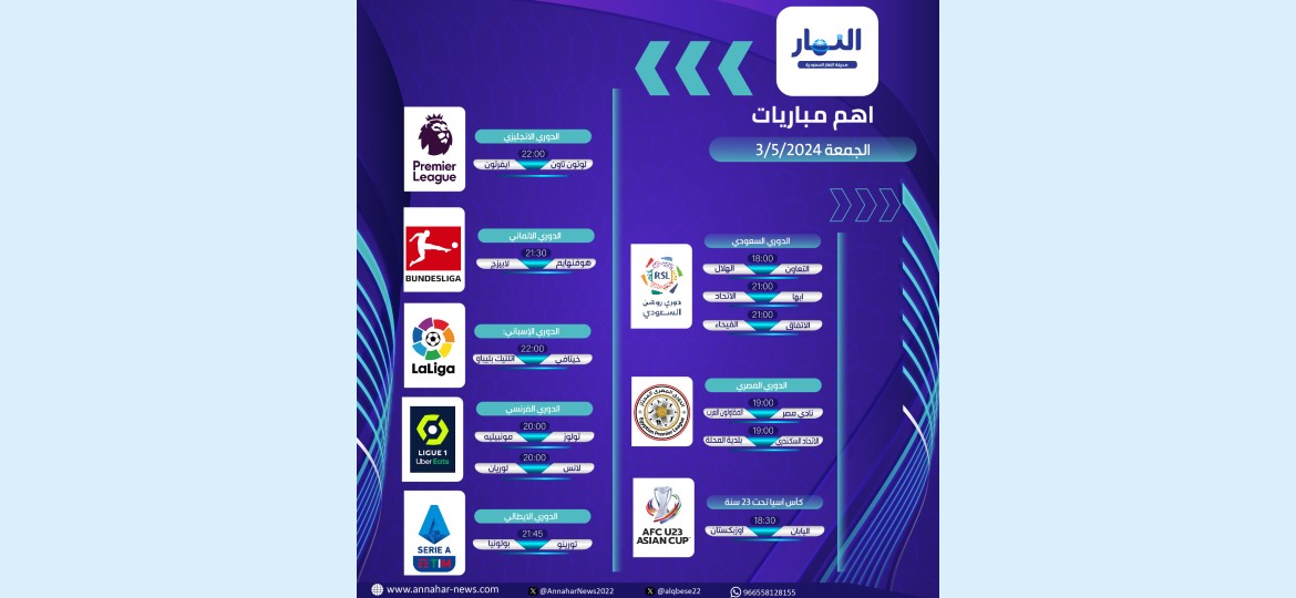 تستکمل اليوم مباريات الجولة 30 من الدوري السعودي بثلاث مباريات ، كما يُلعب نهائي كأس آسيا تحت 23 سنة في قطر.