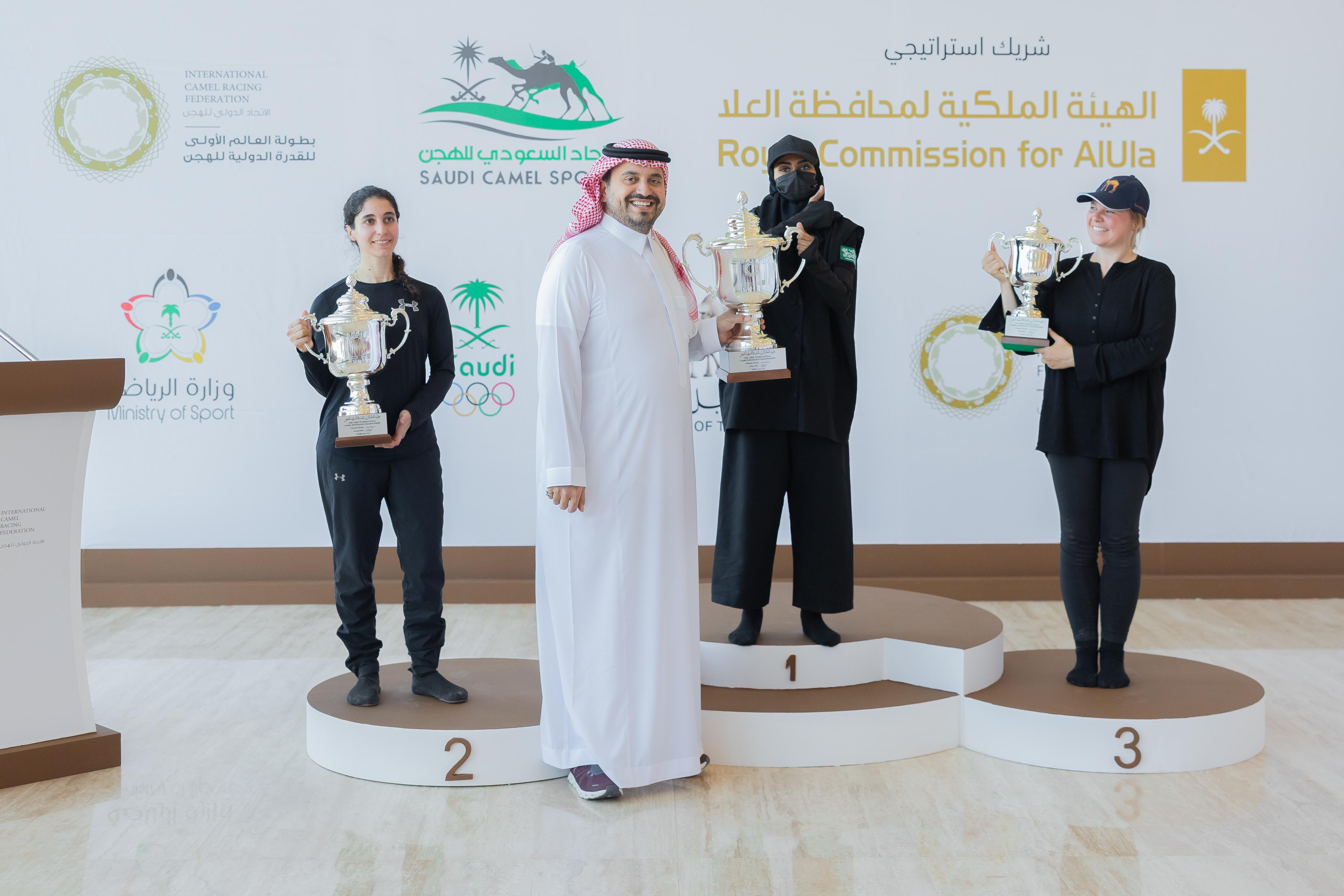 توج صاحب السمو الأمير فهد بن جلوي بن عبد العزيز بن مساعد رئيس الاتحاد الدولي للهجن اليوم "السبت" المنتخب السعودي للهجن بلقب بطولة العالم الأولى للقدرة الدولية للهجن للرجال والسيدات، وذلك على أرض ميدان العلا للهجن والتي أقيمت بالشراكة مع الهيئة الملكية لمحافظة العلا.