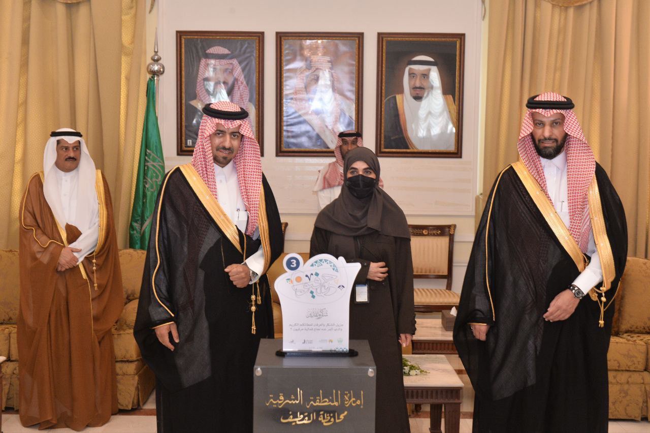 وفي ختام الحفل، أثنى الخريف على كافة الجهود التي بذلت وأتاحت الفرصة لإبراز دور الأسر المنتجة في التنمية الوطنية بالمنطقة وفق توجيهات سمو أمير المنطقة الشرقية وسمو نائبه حفظهما الله، إلى جانب إبراز الطاقات الفاعلة للمنظمين والمتطوعين والجهات الحكومية والأهلية في هذا المحفل، مقدمًا شكره الجزيل، لكل من ساهم وشارك وعمل على نجاح هذه النسخة، التي سلطت الضوء على الدور الرائد للأسر المنتجة وتمكينها للمساهمة في التنمية الوطنية، والتي هي إحدى مستهدفات رؤية القيادة الرشيدة - أيّدها الله.