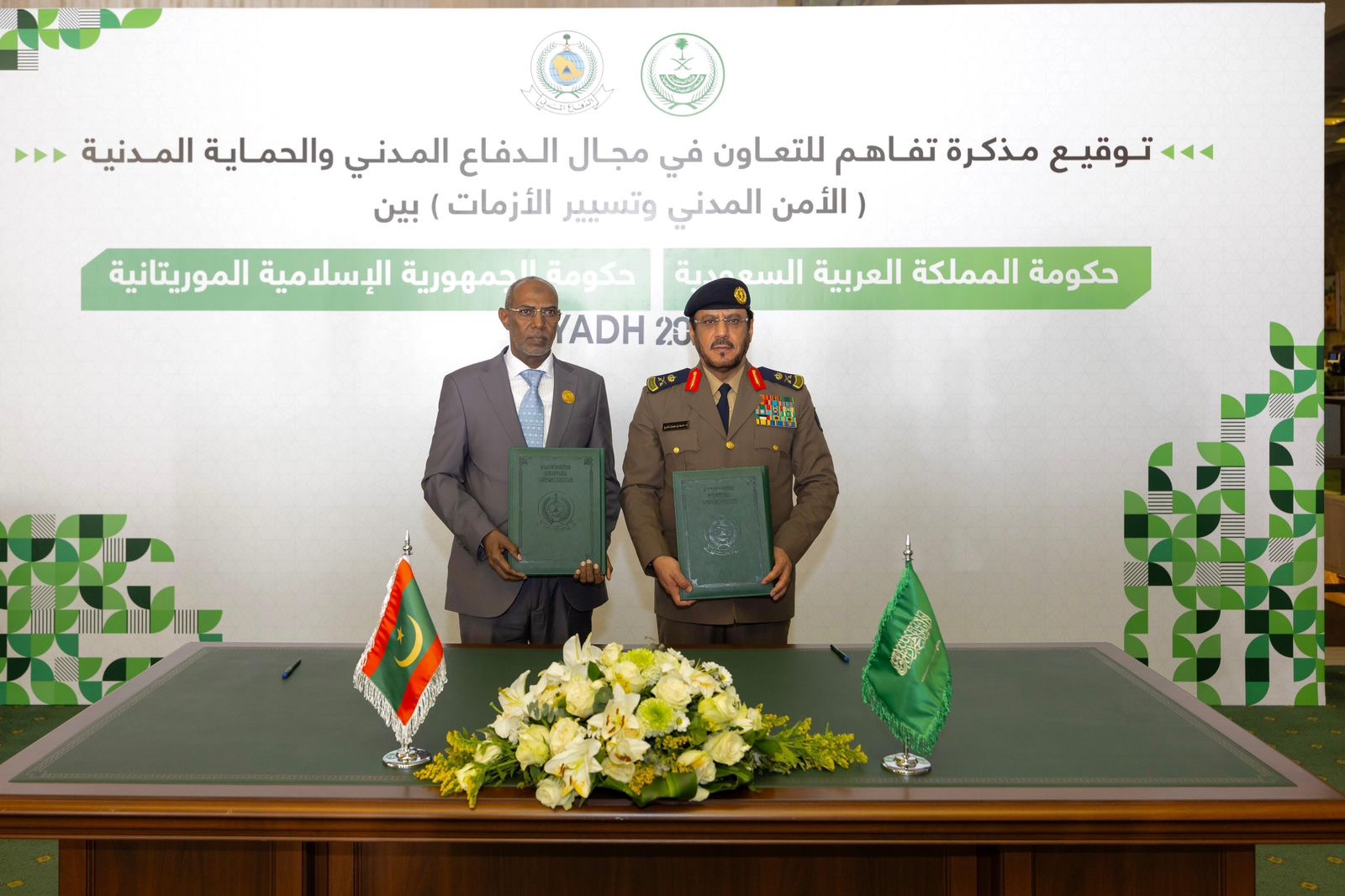 وقعت المديرية العامة للدفاع المدني والأمن المدني وتسيير الأزمات بالجمهورية الإسلامية الموريتانية، اليوم، مذكرة تعاون في مجال الدفاع المدني والحماية المدنية (الأمن المدني وتسيير الأزمات)، بحضور مدير عام الدفاع المدني المكلف اللواء الدكتور حمود بن سليمان الفرج، والمندوب العام للأمن المدني وتسيير الأزمات بالجمهورية الإسلامية الموريتانية اللواء أبو المعالي الهادي سيدي ولد عمر، وذلك في مؤتمر المنظمة الدولية للحماية المدنية، المقام بمدينة الرياض.