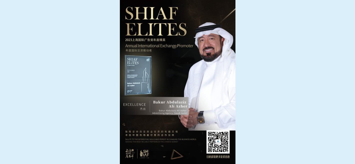 انتهت حفلة توزيع جوائز الدورة السنوية لجوائز الاعلانات الدولية في شنغهاي لعام 2023 بنجاح في 18 أبريل! تم منح السيد بكر عبد العزيز علي الأزهر، الرئيس التنفيذي لمجموعة سعودي اوتو، جائزة أفضل مؤثر الدولي المتميز لعام 2023. يشغل الاستاذ بكر منصب الرئيس التنفيذي لمجموعة سعودي اوتو منذ مايو 1991 وقد أسس بنجاح المجلة الأولى في قطاع السيارات، والتي لها تأثير في المملكة العربية السعودية وجميع دول الخليج. بالإضافة إلى هذا النجاح، أطلقت الشركة بعد ذلك سلسلة من المنتجات الإعلامية الجديدة. بكر ليس فقط خبيرًا في وسائل الإعلام، بل هو أيضًا مستشار ذو خبرة في تسويق العلامات التجارية في قطاع السيارات. يقدم بانتظام النصائح والاستشارات للعلامات التجارية الصينية في قطاع السيارات في الشرق الأوسط بشأن استراتيجيات السوق والعلامة التجارية.