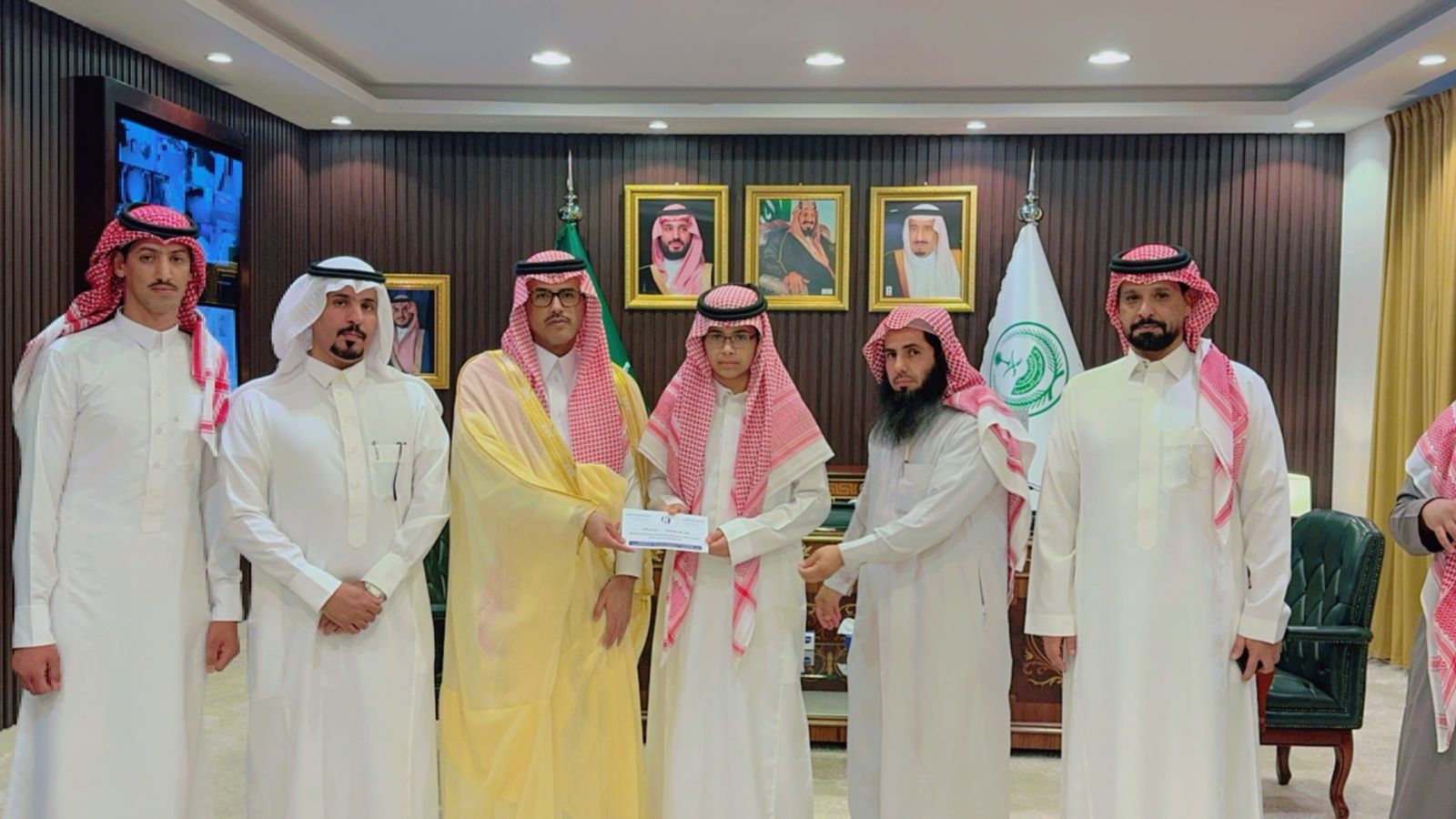 كرم سعادة محافظ طبرجل الاستاذ نادر بن غالب العتيبي اليوم في مكتبه بالمحافظة الطالب نايف عبدالله البلوي من متوسطة بيان طبرجل الأهلية الحاصل على المركز الأول على مستوى المملكة العربية السعودية ببرنامج ريادي والذي اقيم في منطقة الباحة.