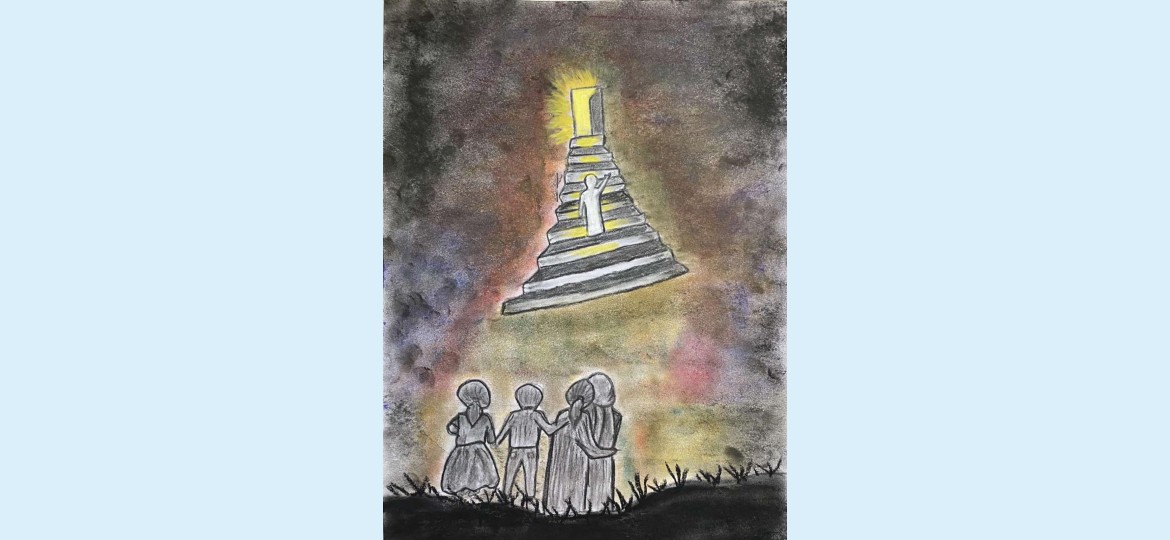 دانة .. تلك الفتاة الرسامة التي جسدت روح والدها وهي تصعد إلى السماء بذلك النور الذي لا ينطفئ أبدا من دعاؤهم له.