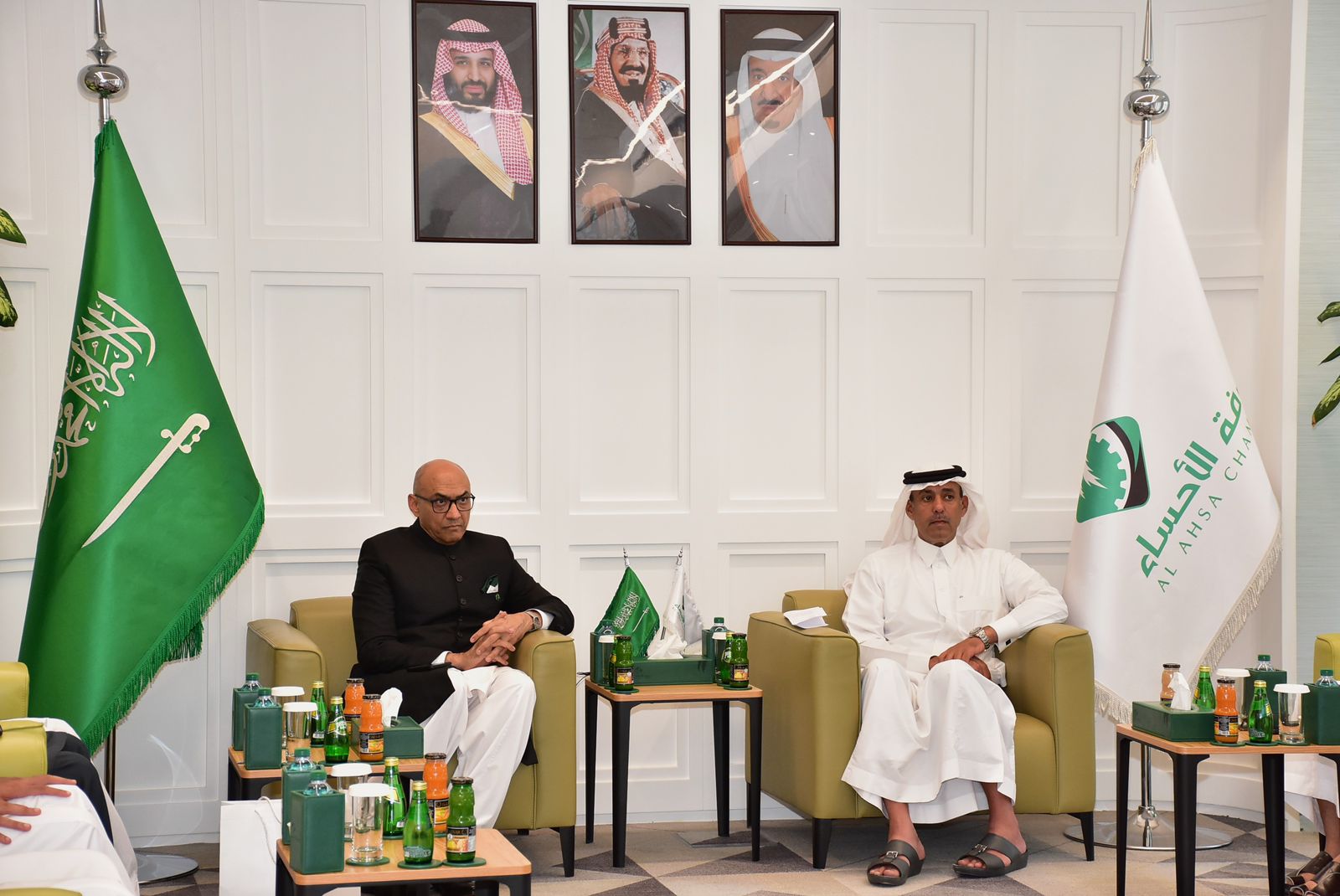استضافت غرفة الأحساء بعد ظهر اليوم الاثنين 13 مايو، سعادة الأستاذ أحمد فاروق، سفير جمهورية باكستان الإسلامية لدى المملكة والوفد المرافق له، في زيارة عمل، بحث خلالها فرص دعم العلاقات التجارية وتنمية استثمارات قطاعات الأعمال بالإضافة إلى استعراض الفرص الاستثمارية والميز التنافسية في الأحساء.