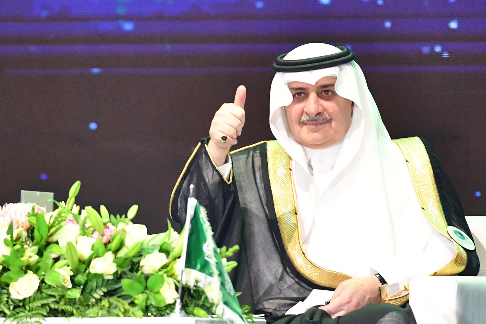 مقدماً سموه الشكر للقائمين والداعمين لهذا الصرح العلمي الكبير وعلى رأسهم نائب رئيس مجلس الامناء صبيح بن طاهر المصري والذي كان له الفضل بعد الله فيما وصلت اليه الجامعة من تميز ، مثنياً على دور الرئيس التنفيذي لشركة نيوم المهندس نظمي النصر. واسهامات شركة نيوم في ابتعاث خريجي وخريجات الجامعة لمختلف الدول.