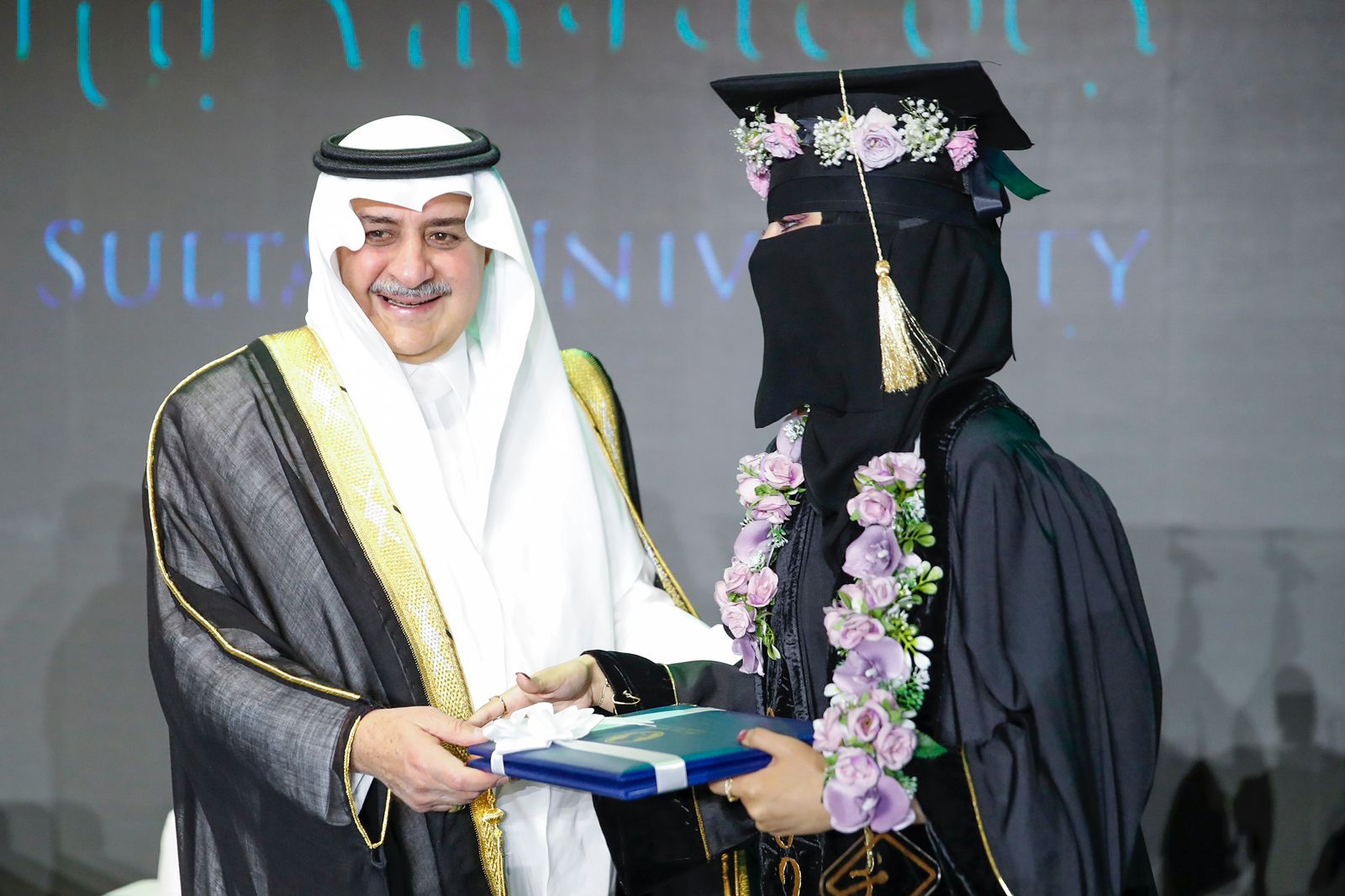 رعى صاحب السمو الملكي الأمير فهد بن سلطان بن عبدالعزيز أمير منطقة تبوك رئيس مجلس أمناء جامعة فهد بن سلطان ، بحضور صاحب السمو الملكي الأمير خالد بن سعود بن عبدالله الفيصل بن عبدالعزيز نائب أمير منطقة تبوك ، مساء اليوم، حفل تخريج الدفعة 16 لحملة البكالوريوس، والدفعة الـ11 لحملة الماجستير، من طلاب وطالبات جامعة فهد بن سلطان والبالغ عددهم أكثر من 400 خريجاً وخريجة، وذلك بمقر الجامعة.