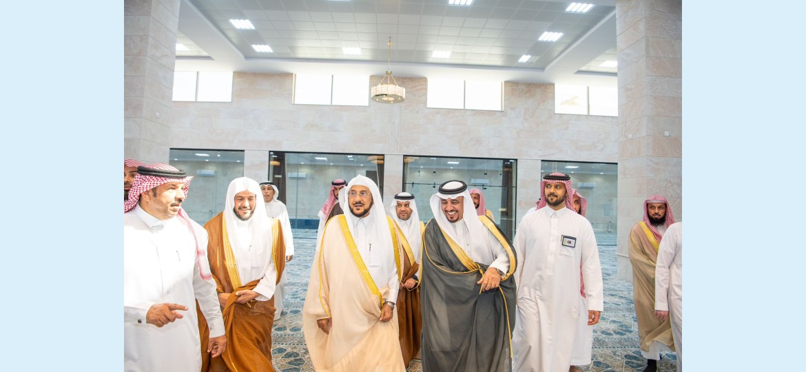 وتجوّل معاليه بأرجاء الجامعين ومرافقهما، واستمع لشرح مفصل عن إنشاءهما على الطراز المعماري السلماني، وعلى ما تشتمل عليه من مرافق وخدمات وأبرز المراحل التي مرت بها.