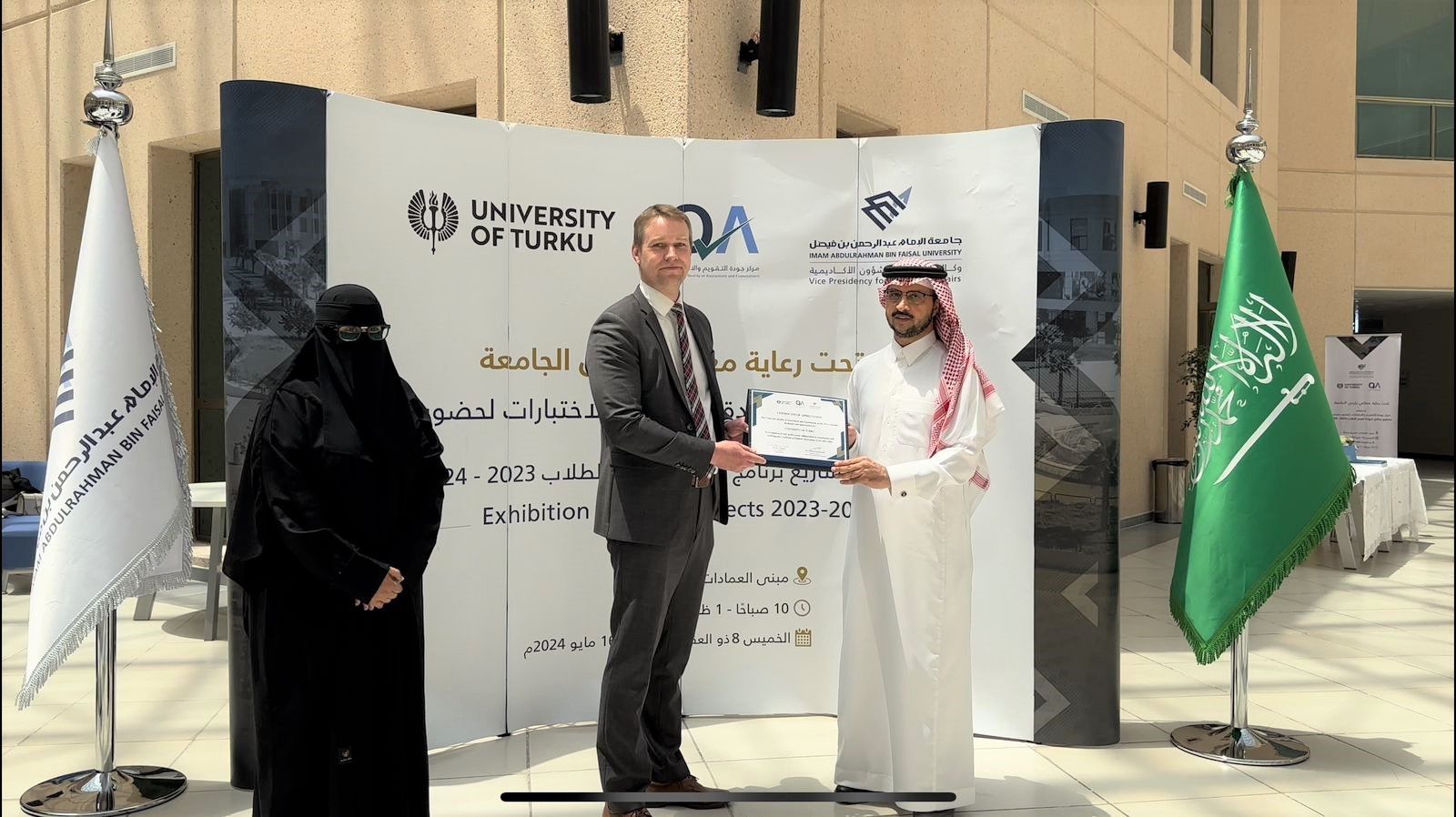 برعاية معالي رئيس جامعة الإمام عبد الرحمن بن فيصل الأستاذ الدكتور عبد الله الربيش، افتتح ( اول امس ) ، نائب الرئيس للشؤون الاكاديمية الدكتور غازي العتيبي المعرض الختامي لمشاريع برنامج شهادة تقييم الطلاب ، والتي ينظمها مركز جودة التقويم والاختبارات بوكالة الجامعة للشؤون الاكاديمية بالشراكة مع جامعة توركو الفنلندية بحضور مدير الشراكات الدولية في جامعة توركو آري كوسكي .