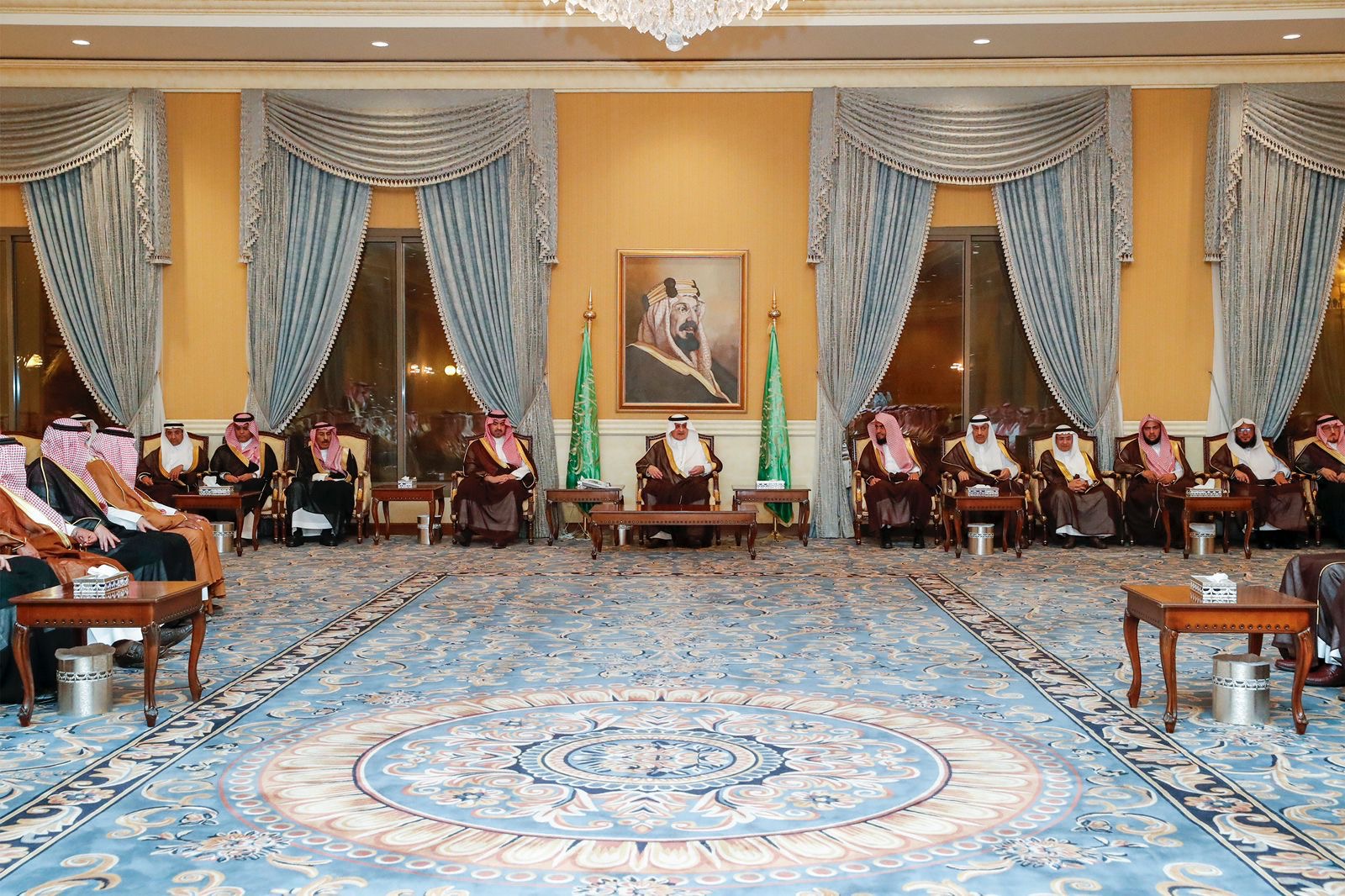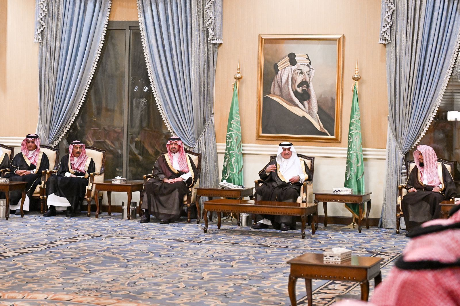 وفي بداية الاستقبال رحب سموه بالجميع، متناولاً في حديثه للمواطنين العديد من الموضوعات التي تهم المنطقة في مختلف المجالات ، سائلاً الله سبحانه وتعالى أن يديم على البلاد أمنها وعزها واستقرارها في ظل قيادة خادم الحرمين الشريفين الملك سلمان بن عبدالعزيز آل سعود، وسمو ولي عهده الأمين -حفظهما الله- بعد ذلك تناول الجميع طعام العشاء على مائدة سموه .