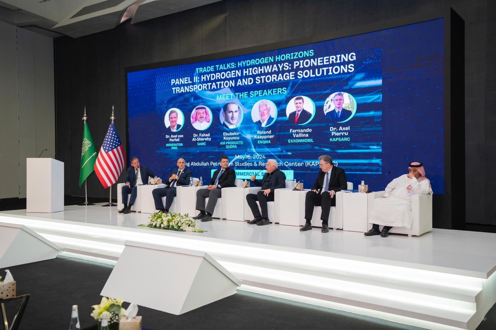 نظم القسم التجاري بالقنصلية الأمريكية بالظهران وسفارة الولايات المتحدة الأمريكية في الرياض بالتعاون مع وزارة الطاقة ومركز الملك عبد الله للدراسات والبحوث البترولية (كابسارك) يوم 16 مايو برنامج حوار بعنوان “المحادثات التجارية: آفاق الهيدروجين – نحو تعزيز تحوّل الطاقة في عالم اليوم”، وهو برنامج يركّز على تقنيات الهيدروجين. وانضم الى البرنامج عدد من المتحدثين من وزارة الطاقة السعودية، وشركة أرامكو السعودية، وشركة سابك، وشركة نيوم للهيدروجين الأخضر، وشركة “إنوا”، والشركات الرائدة في هذا القطاع مثل “إير برودكتس قدرة” (Air Products Qudra)، و”-كومينز” (Cummins)، و”إكسون موبيل” (ExxonMobil)، و”هانيويل” (Honeywell).