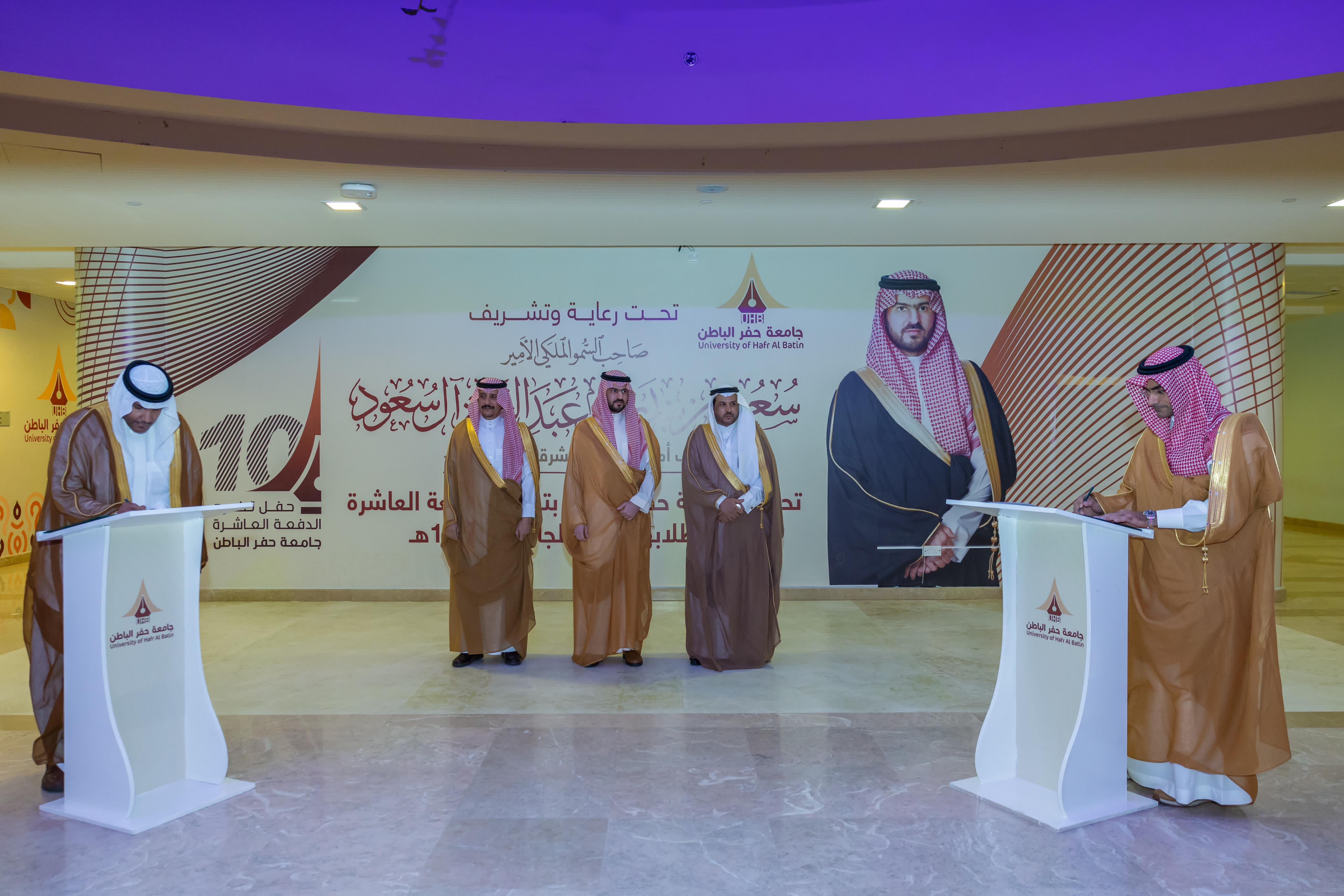 شهد صاحب السمو الملكي الأمير سعود بن بندر بن عبد العزيز نائب أمير المنطقة الشرقية، مراسم توقيع مذكرة تفاهم بين جامعة حفر الباطن وأمانة حفر الباطن وذلك بحضور صاحب السمو الأمير عبدالرحمن بن عبدالله بن فيصل محافظ حفر الباطن، ورئيس الجامعة الأستاذ الدكتور خالد بن باني الحربي، وعدد من قيادات الجامعة.