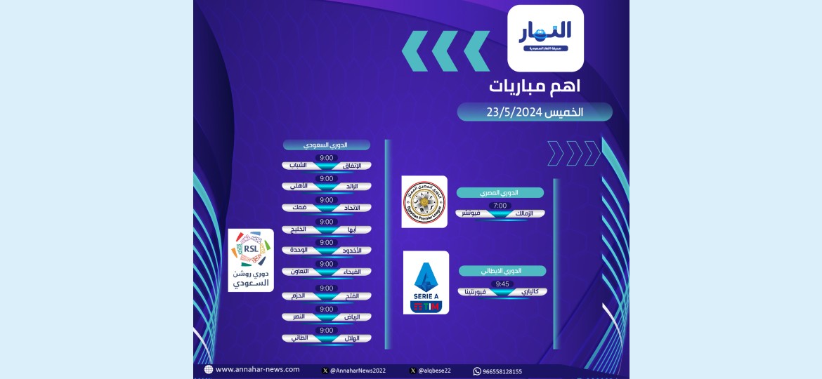 - نادي الرياض أمام نادي النصر على ملعب مدينة الأمير فيصل بن فهد الرياضية