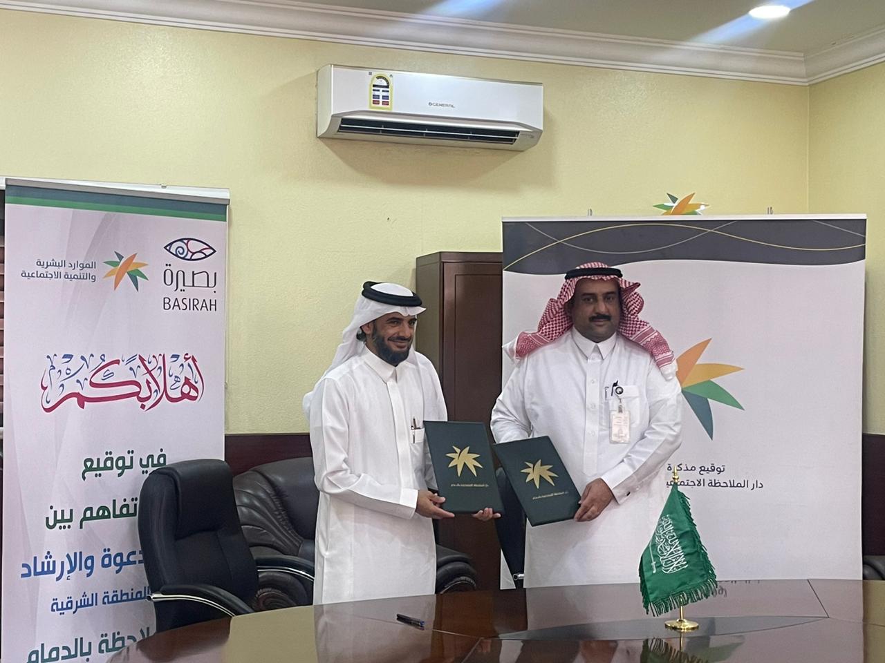 أبرم "دار الملاحظة الإجتماعية" بالدمام شراكة مجتمعية، بحضور مدير الدار الأستاذ سعيد بن صالح الشهراني، مع "جمعية الدعوة والإرشاد" بـ "سجون المنطقة الشرقية" "بصيرة" بحضور الأستاذ عبدالرحمن بن علي القرني نائب رئيس مجلس الادارة، والأستاذ أحمد بن علي الشهري المدير التنفيذي للجمعية.