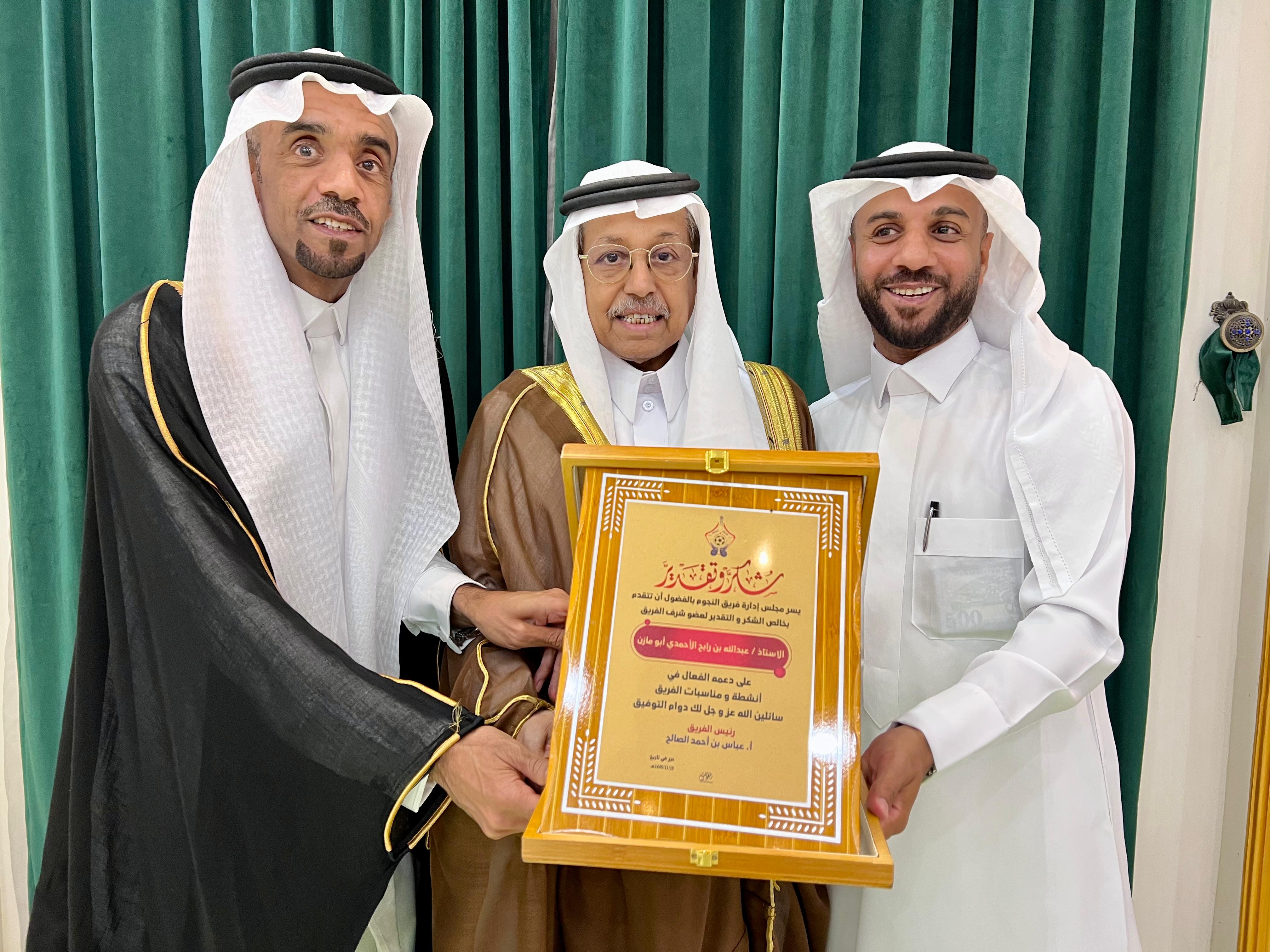 أقام مجلس إدارة "فريق النجوم" بالفضول برئاسة الأستاذ عباس بن أحمد الصالح، حفلاً تكريمياً لأعضاء الفريق الأول لكرة القدم بمناسبة تحقيقهم لقب بطولة نجوم الفضول الرمضانية لعام 1445 هـ، وذلك في قاعة " سدرة فاطمة " للمناسبات بحضور عدداً من وجهاء الوسط الرياضي في بلدة الفضول و تشريف من عضو شرف الفريق سعادة اللواء عبد الله بن رابح الأحمدي ، حيث بدأ الحفل مع المقدم الاستاذ حبيب العساكر، والذي أبدع في الوصف و التعبير عن تاريخ الفريق و حجم الانجازات التي حققها على كافة الأصعدة فيما كانت كلمة الإدارة للأستاذ جاسم الصالح، و الذي قدم خالص الشكر و التقدير للجميع على حضورهم و مشاركتهم نشاطات الفريق مثنياً على أعضاء الفريق المساهمين في تحقيق البطولة في الوقت الذي تم عرض مقطع مرئي عن مشوار الفريق في البطولة.