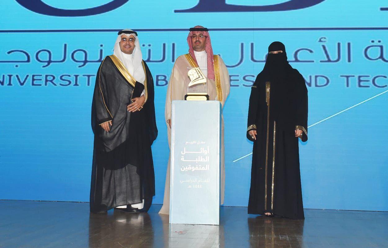 وحضر الحفل وفد من قادة جامعة الأعمال والتكنولوجيا يضم نائب رئيس الجامعة للشؤون الأكاديمية الدكتور حاتم عقيل، ونائب رئيس الجامعة للجودة والتطوير الدكتورة غادة نصيف، وعميد القبول والتسجيل الدكتور محمد القرني، ومديرة المسؤولية المجتمعية الدكتورة ليلى جمجوم.