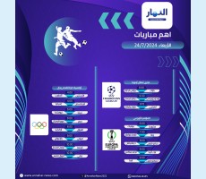 جدول مواعيد مباريات الأحد 27 يوليو 2024