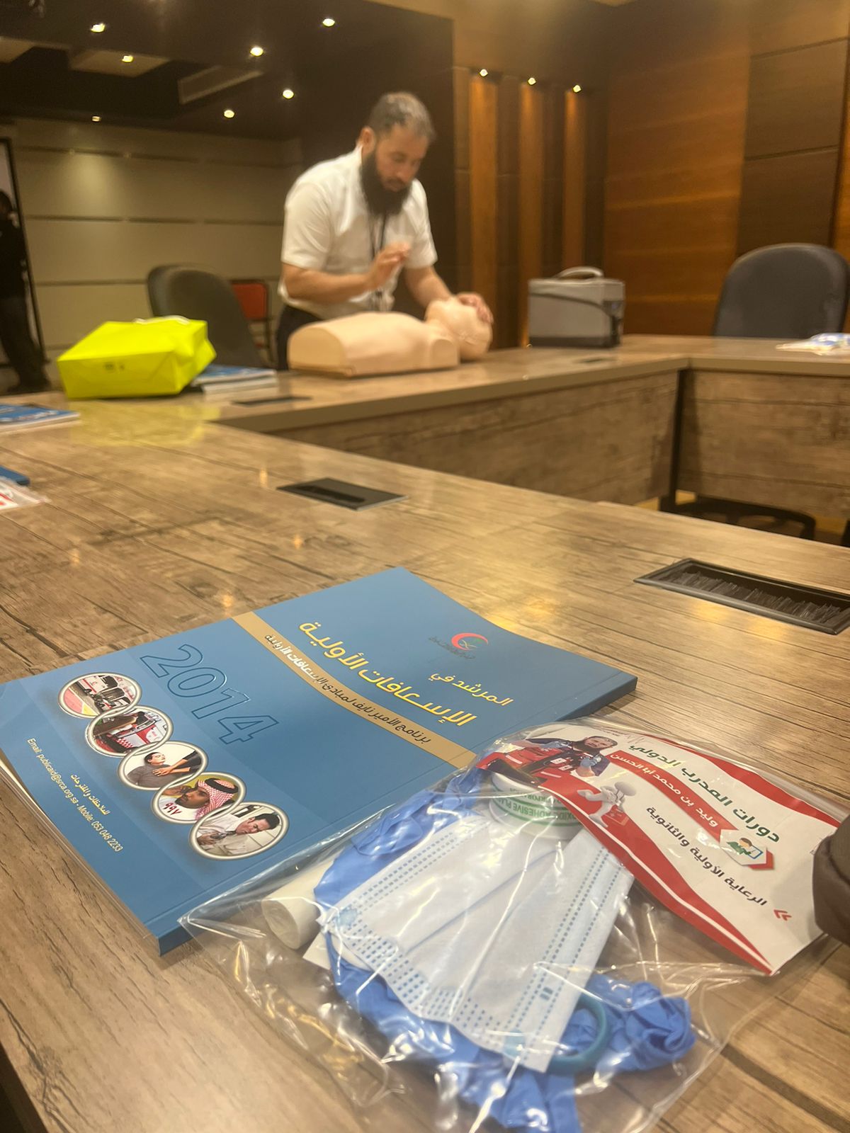 وتم تقديم التدريب للمتدربات والتطبيقات العملية وحقيبة برنامج الإسعافات الأولية حيث أقيمت في برج الخرج.