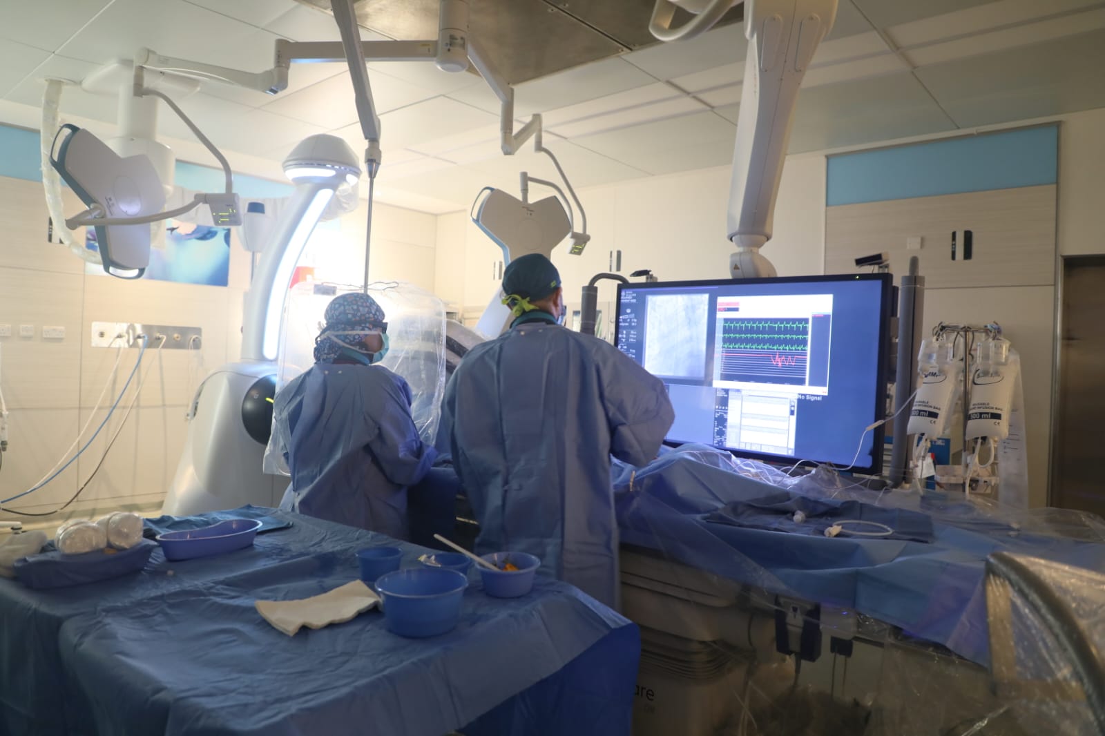 حيث تم نقل الحالة إلى غرفة عمليات القسطرة القلبية لإجراء عملية قسطرة عاجلة، تم فيها تركيب دعامة علاجية جديدة في مكان التضيقات، استغرقت 40 دقيقة، تكللت - ولله الحمد- بالنجاح.