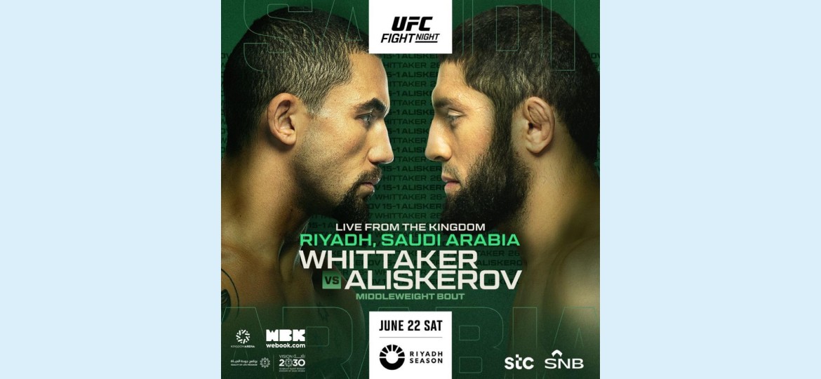 يستعد عضو فريق خالد بن حمد لفنون القتال المختلطة KHK MMA المقاتل إكرام أليسكروف لكتابة التاريخ في مشوار مشاركته في بطولة UFC لفنون القتال المختلطة للمحترفين، وذلك عندما يخوض نزالا أمام البطل العالمي السابق المقاتل الاسترالي روبرت ويتكر في فئة الوزن المتوسط، يوم "السبت" على صالة "المملكة أرينا" بالعاصمة السعودية الرياض، في الحدث الرئيسي لبطولة UFC- FIGHT NIGHT.