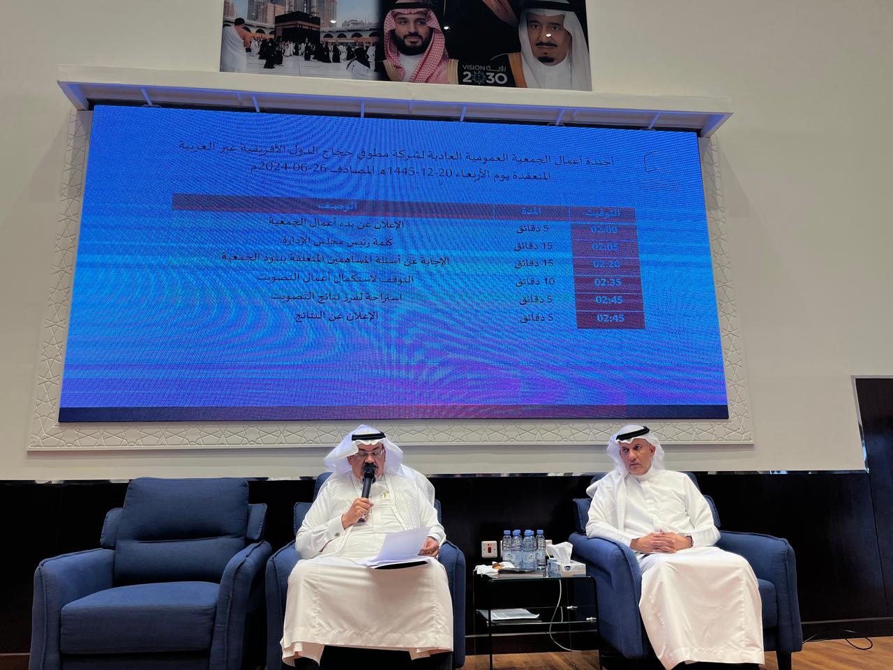وحضر اجتماع الجمعية العمومية ممثلو وزارة التجارة، وترأسها رئيس مجلس إدارة الشركة الدكتور / أحمد بن عباس سندي، والذي وجه كلمته لمساهمي ومساهمات الشركة التي أكد فيها على التحول غير المسبوق في أعمال الشركة منذ عهد "المؤسسة" سابقاً، لتصبح الشركة عبارة عن مجموعة تخدم نحو ربع مليون حاج بحجم إيرادات يقارب المليار ريال.