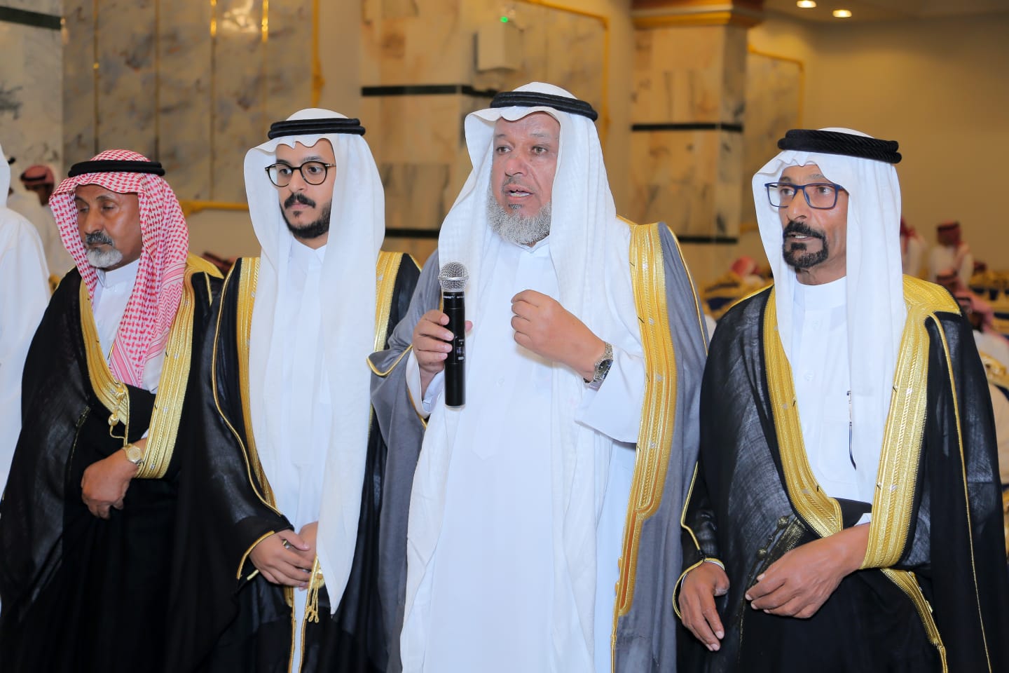 من جهته قدم الأستاذ عيضه بن عبدالله الحارثي بأسمه ونيابة عن ابناءه التهنئه للعرسان متمنياً لهم التوفيق والنجاح في حياتهم الزوجية.