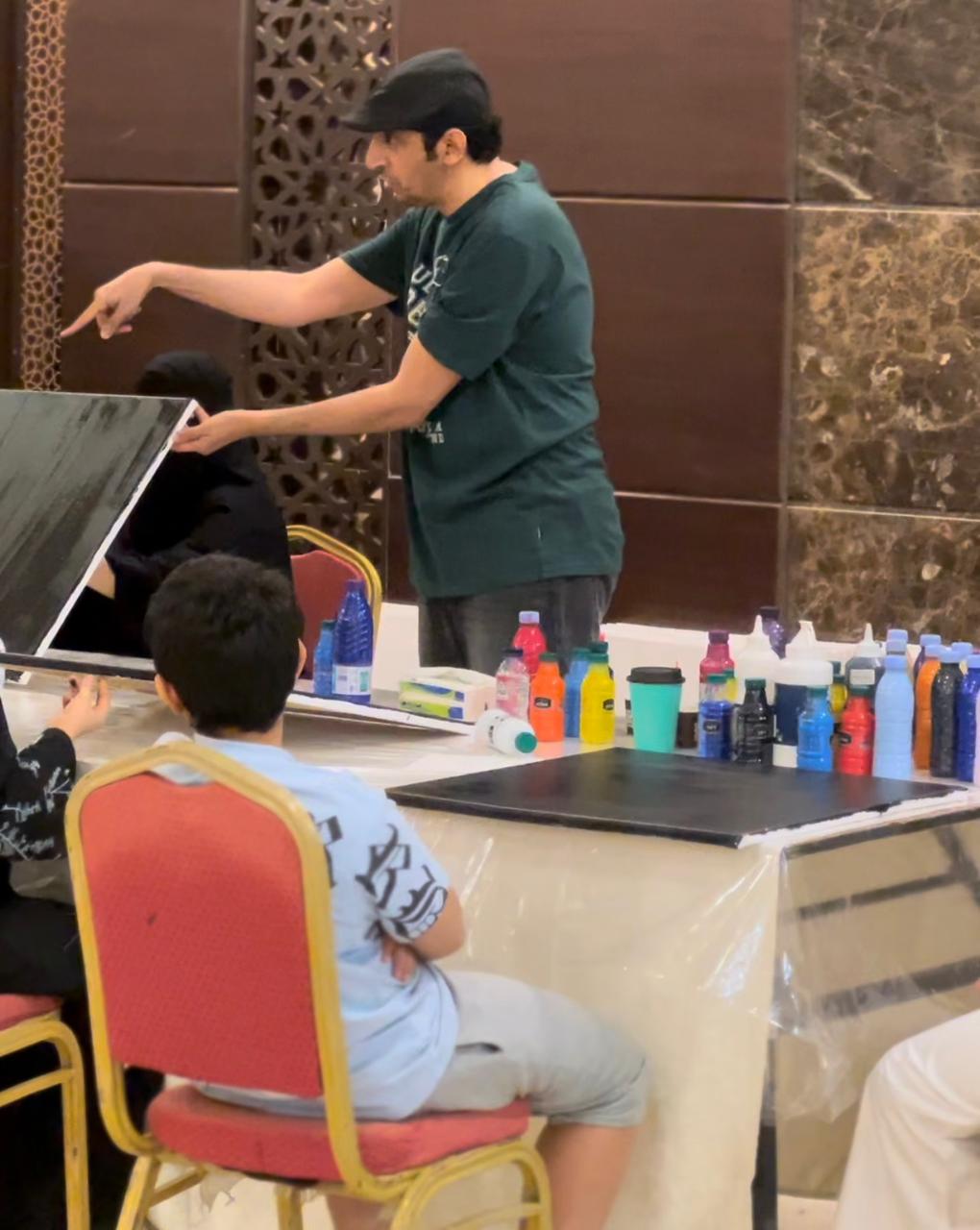 حيث افتتحت نشاطها بورشتي:سكب الألوان بقيادة أ.عبيد البراك وورشة فن الكاريكاتير للأطفال بقيادة أ.غدير الألمعي.