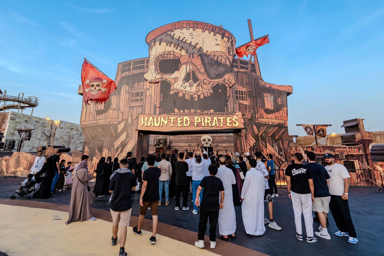 وتوفر (قراصنة الأشباح) منطقة رعب متكاملة ومتنوعة تشمل مجموعة من التجارب المختلفة المتناسبة مع جميع الفئات العمرية، إذ تمنح الزائر رحلة فريدة من نوعها مليئة بالتشويق والمتعة تغمرك بموجة من الإثارة والتشويق.