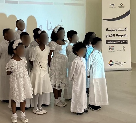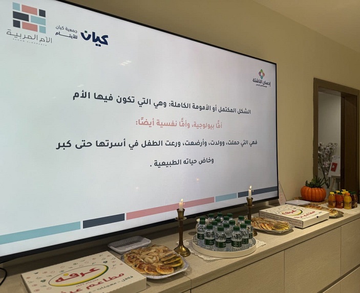 كما قالت المدربة الأستاذة نادية العوبثاني:" سعينا في مؤسسة إحسان الناشئة الوقفية بالشراكة مع جمعية كيان للأيتام لكفالة من نوع آخر ألا وهي الكفالة الفكرية والأخلاقية والقيمية، فقدمنا لهم في دوحة الإحسان برنامج ركاز القيم والذي يستهدف الأطفال باستخدام أساليب التعلم النشط، في بيئة تعليمية جاذبة وامتد استهدافنا لأم اليتيم ومن تقوم برعايته بتقديم برنامج الأم المربية لتعزيز مفهوم الأمومة وأهميتها وتمكينهن من أساليب التربية الفاعلة مع مناقشات لحل بعض المشكلات السلوكية عند الأبناء سائلين الله عز وجل أن نكون شركاء للكفلاء وأن نحظى بأجر كفالة اليتيم، وتفضل الجميع للبوفيه.
