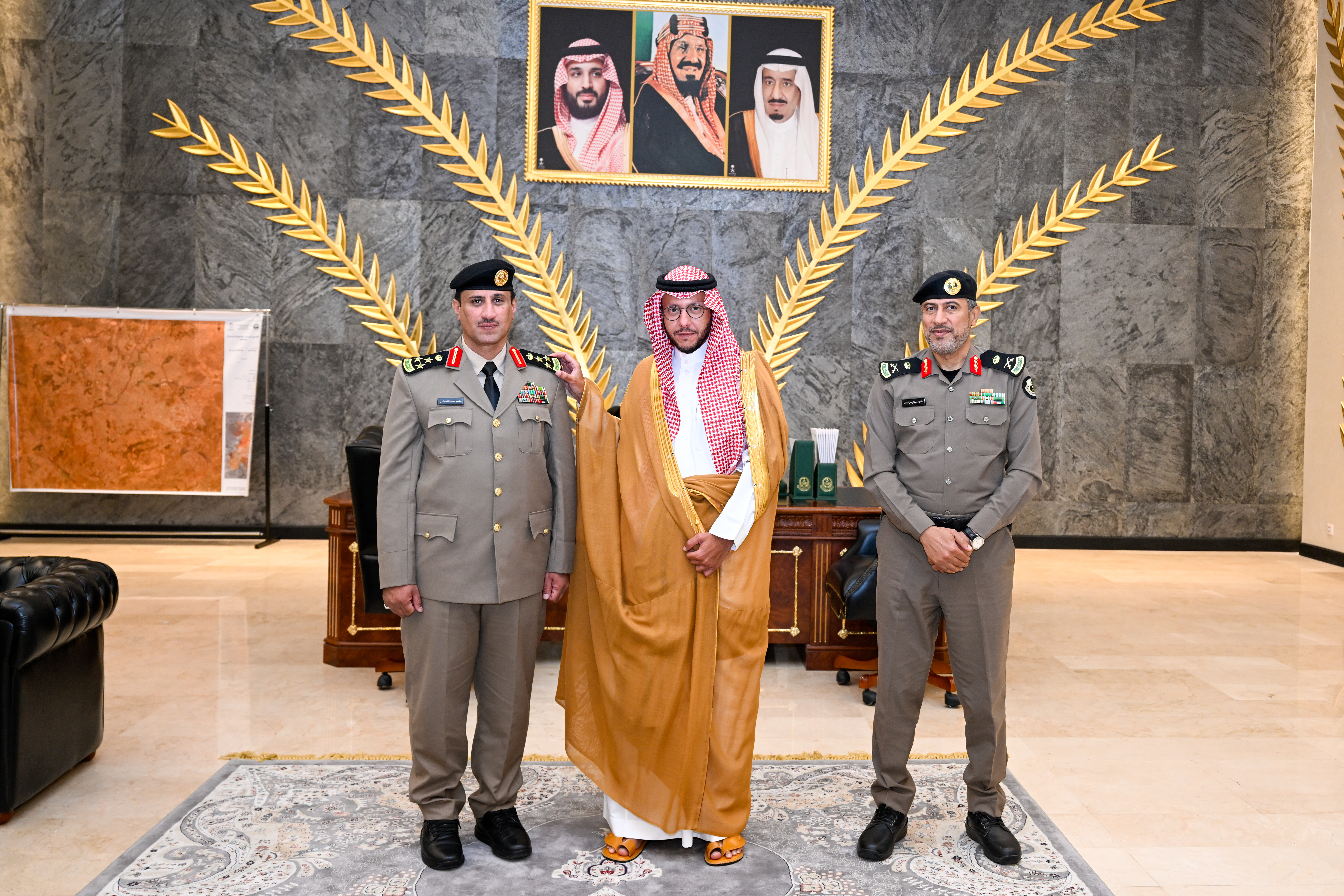 قلد صاحب السمو الملكي الأمير سعود بن نهار بن سعود بن عبدالعزيز محافظ الطائف بحضور مدير شرطة المحافظة اللواء عثمان بن عبدالرحمن اليوسف مدير مرور المحافظة العميد مشبب القحطاني رتبته الجديدة