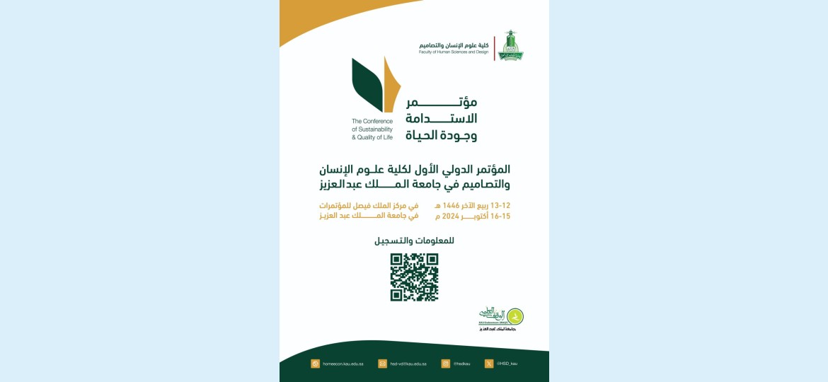 تستعد جامعة الملك عبدالعزيز لتنظيم المؤتمر الدولي الأول لكلية علوم الإنسان والتصاميم تحت عنوان “الاستدامة وجودة الحياة”، وذلك في الفترة من 12 إلى 13 ربيع الآخر، في رحاب جامعة الملك عبدالعزيز.