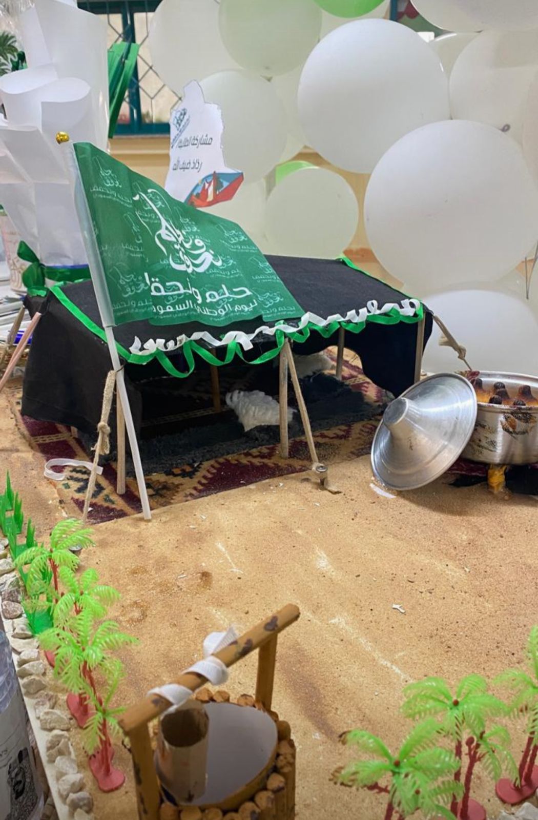 بعدها ألقت مديرة المدرسة أ. نايفة الرويلي كلمة رحبت فيها بالجميع، وتحدثت عن هذه المناسبة الغالية على الجميع ، وأوضحت أهمية استشعار الاحتفال بهذا اليوم العظيم ،ثم تطرقت إلى بداية تأسيس هذا الكيان العظيم على يد المغفور له-بإذن الله- الملك عبدالعزيز- طيب الله ثراه- ، ومن ثم أكمل أبناؤه مسيرة البناء حتى أصبحت المملكة العربية السعودية نموذجًا للدول المتقدمة ،ثم بعد ذلك عرض تقديمي بوربوينت عن اليوم الوطني السعودي 94