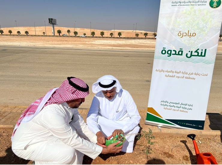 وأنطلقت أعمال الحملة زراعة مجموعة من الأشجار بحضور مدير عام فرع وزارة البيئة بمنطقة الحدود الشمالية المهندس بندر بن صالح الهديه ورئيس النادي الأدبي الثقافي بالمنطقة الأستاذ ماجد بن صلال المطلق .