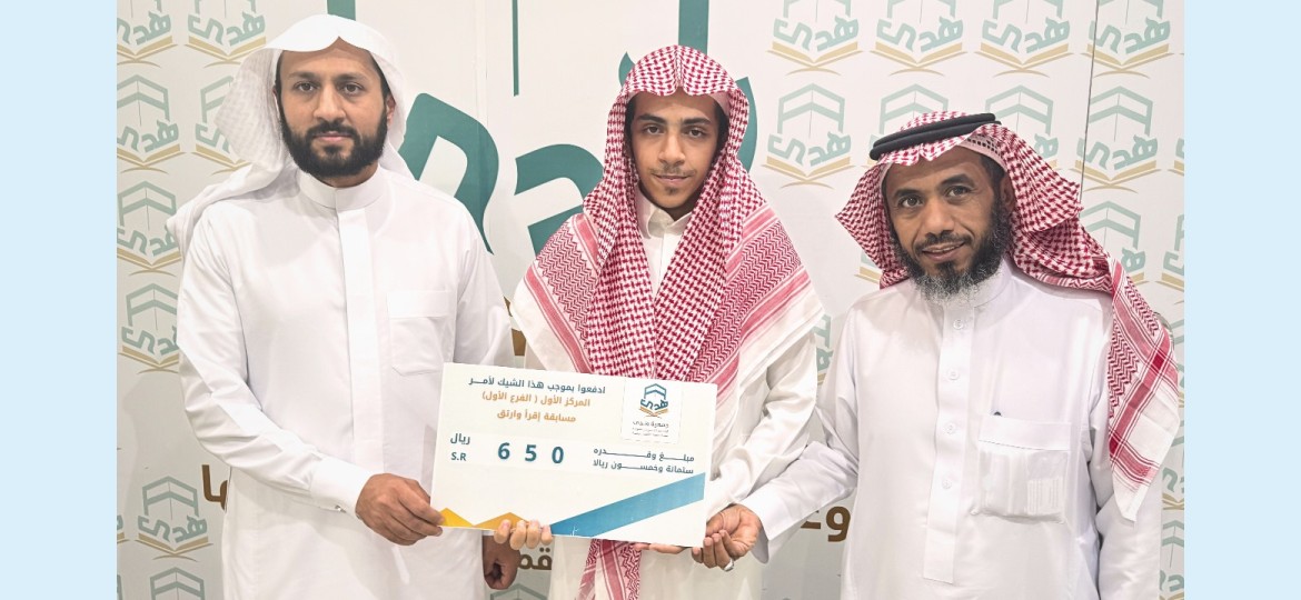 كرم رئيس مجلس إدارة جمعية هدى لتعليم القرآن وعلومه بشرق مكة وضواحيها الأستاذ / محمد حكمي العشر الأوائل الفائزين بمسابقة اقرأ وارتق والتي أقيمت ضمن البرامج الصيفية للجمعية في عدد من المساجد والجوامع بمكة والتي استمرت قرابة 30 يوما شارك فيها أكثر من 150 طالب و 50 حلقة ولله الحمد.