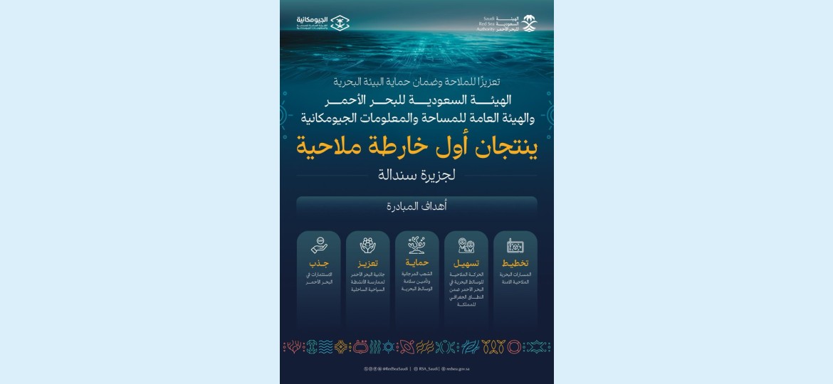 قامت الهيئة السعودية للبحر الأحمر بالتعاون مع الهيئة العامة للمساحة والمعلومات الجيومكانية، بإنتاج أول خارطة بحرية ملاحية بشقيها الورقي والإلكتروني عالي الدقة لجزيرة سندالة في منطقة نيوم، وبأحدث المعايير العالمية وفق معايير المنظمة الهيدروغرافية الدولية (IHO)، بالإضافة إلى أربعة خرائط أخرى لمنطقة نيوم.