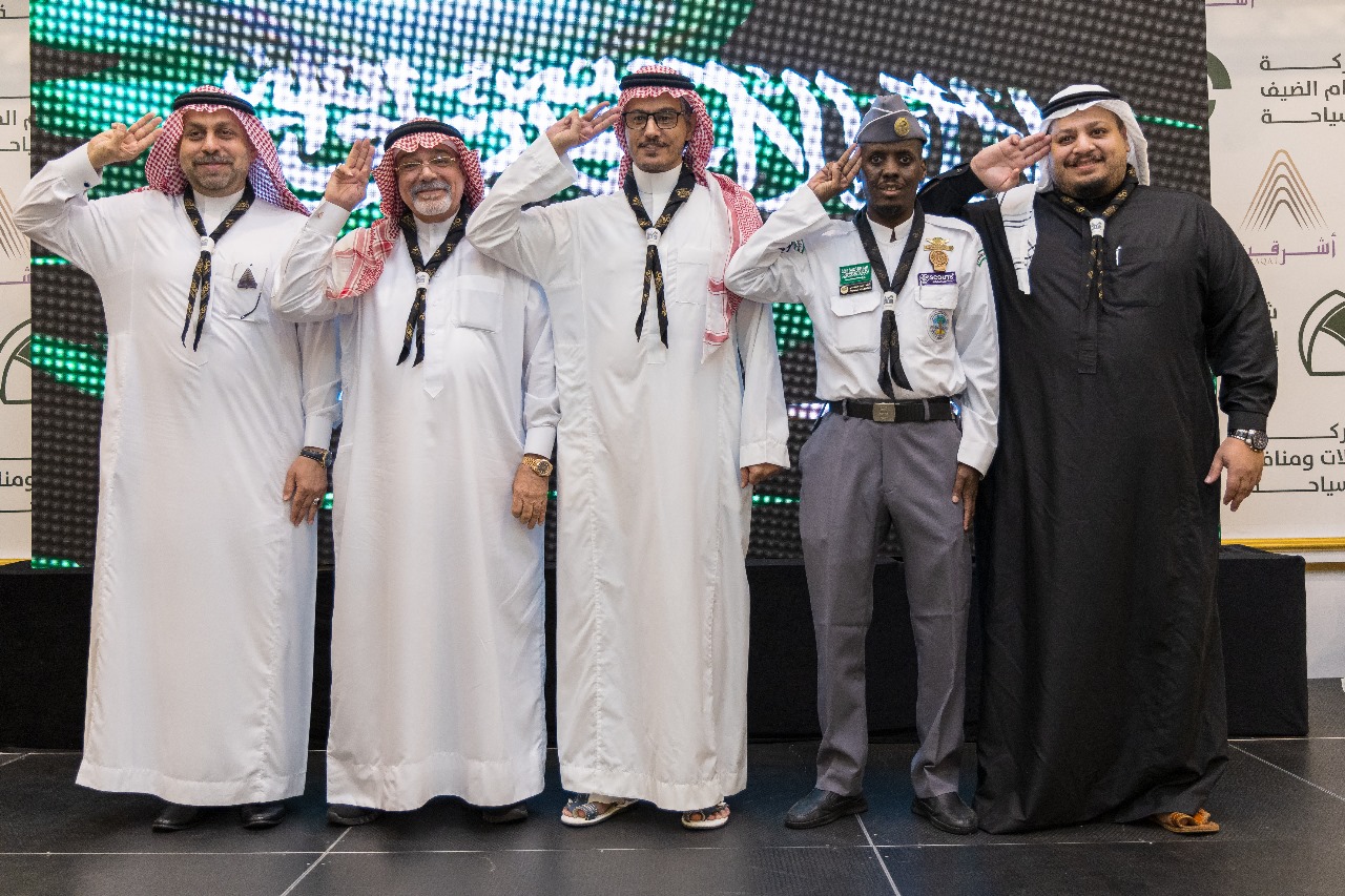 كما قام القائد الكشفي المهندس بكر ابراهيم التمبكتي بتقليد الأمين العام للإتحاد الكشفي للبرلمانيين العرب الدكتور فيصل خزيم العنزي منديل مماثل تلتها مسيرة كشفية والنشيد الوطني ثم بدا الحفل الذي قدمه المذيع اللامع القائد الكشفي بكر عبد القادر بالقرآن الكريم تلاه الكشاف عبد الإله عبد الحميد آدم ثم كلمة ترحيبية القاها الاستاذ التربوي محمد عبد الله بازيد رئيس مجلس اصدقاء كشافة شباب مكة المكرمة بجمعية مراكز الأحياء بمكة المكرمة بعدها قدم الجسيس القائد الكشفي سمير سالم باطوق مجس مكي حجازي ثم فقرة من نحن قدمها الكشاف ابراهيم سليمان أبكر.