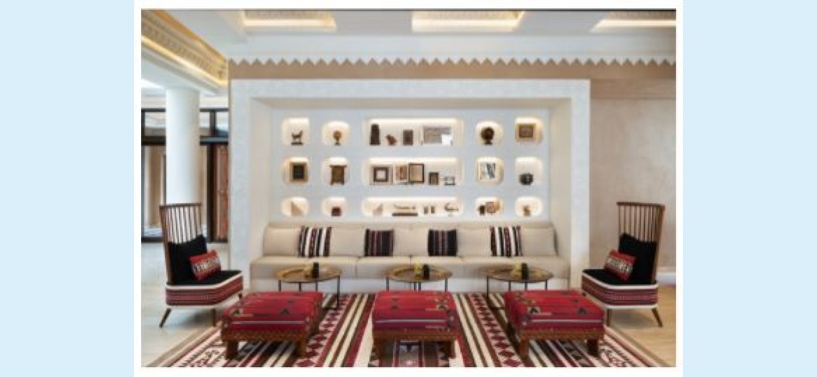 ما إن يخطو الضيوف عتبة الأبواب النجدية المُهيبة للفندق؛ حتى تبدأ تجربتهم في رحلةٍ عبر الزمن، تتعانق فيها عراقة الماضي مع رونق الحاضر وفرص المستقبل. وتستقبلهم حفاوة الضيافة السعودية في ردهةٍ دافئةٍ تزدان بمجالسها الأنيقة التي تستحضر في زواياها دفء البيت السعودي الأصيل. وعند تسجيل الوصول، يُكرم الضيوف بباقةٍ من المشروبات التقليدية التي تتقدّمها القهوة السعودية، إضافةً إلى خياراتٍ متنوعةٍ من التمور والحلويات، والشاي المثلج المعطر بالتوابل في "وُجار"، ذلك المجلس الفريد المُستوحى من المجالس العتيقة حيث كانت تفوح رائحة القهوة والشاي المُعد على الجمر.