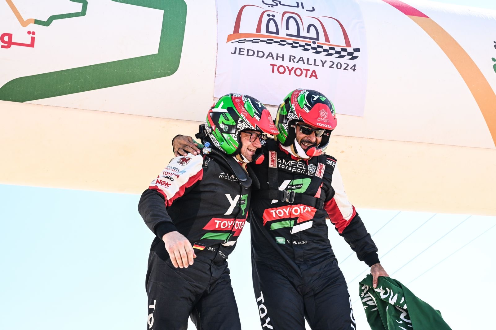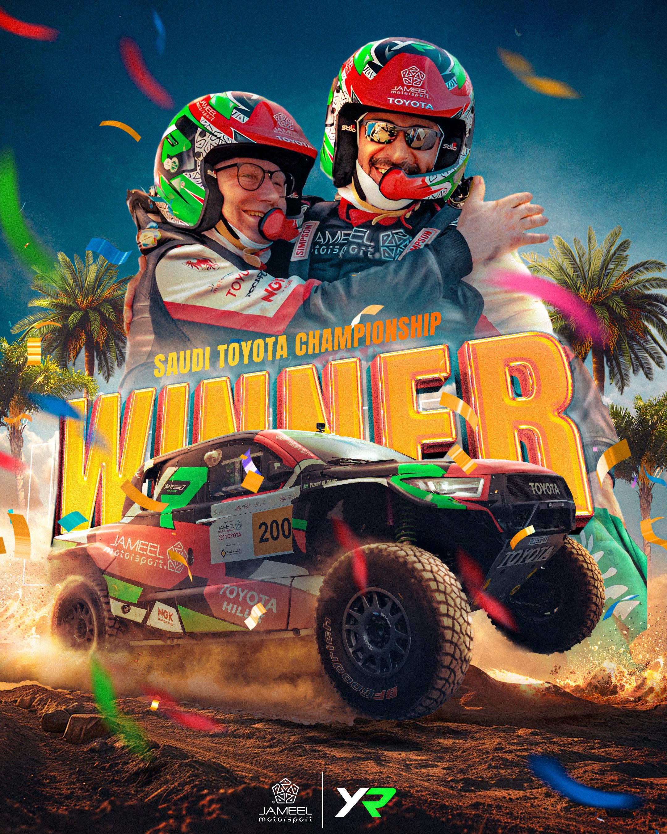 توفيقه، نجحنا في تحقيق لقب بطولة السعودية تويوتا للراليات الصحراوية للمرة الرابعة، واستطعنا الفوز بجميع جولاتها. أتوجه بخالص الشكر لشريك النجاح جميل لرياضة المحركات، وأشكر جماهيري الوفيّة التي كانت دائمًا مصدر إلهام ودافع لي لتحقيق الأفضل.”