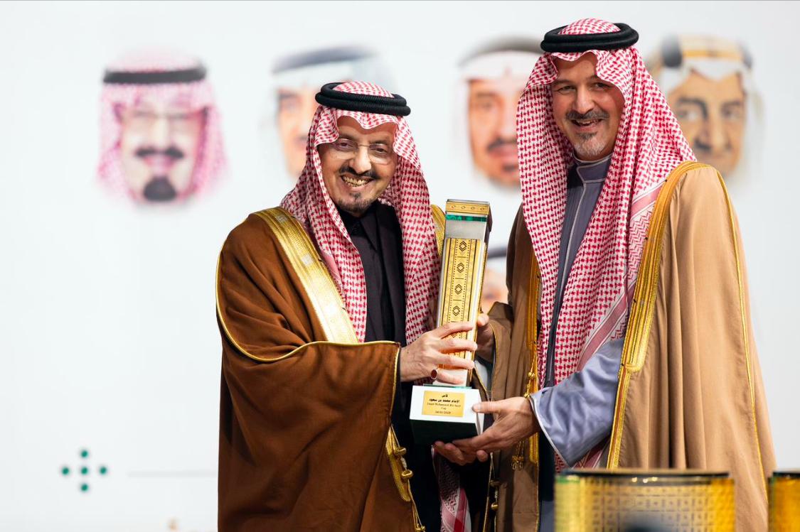 صاحب السمو الملكي الأمير بندر بن خالد الفيصل، رئيس هيئة الفروسية يسلم كأس الإمام محمد بن سعود لصاحب السمو الملكي الأمير فيصل بن خالد، مستشار خادم الحرمين الشريفين