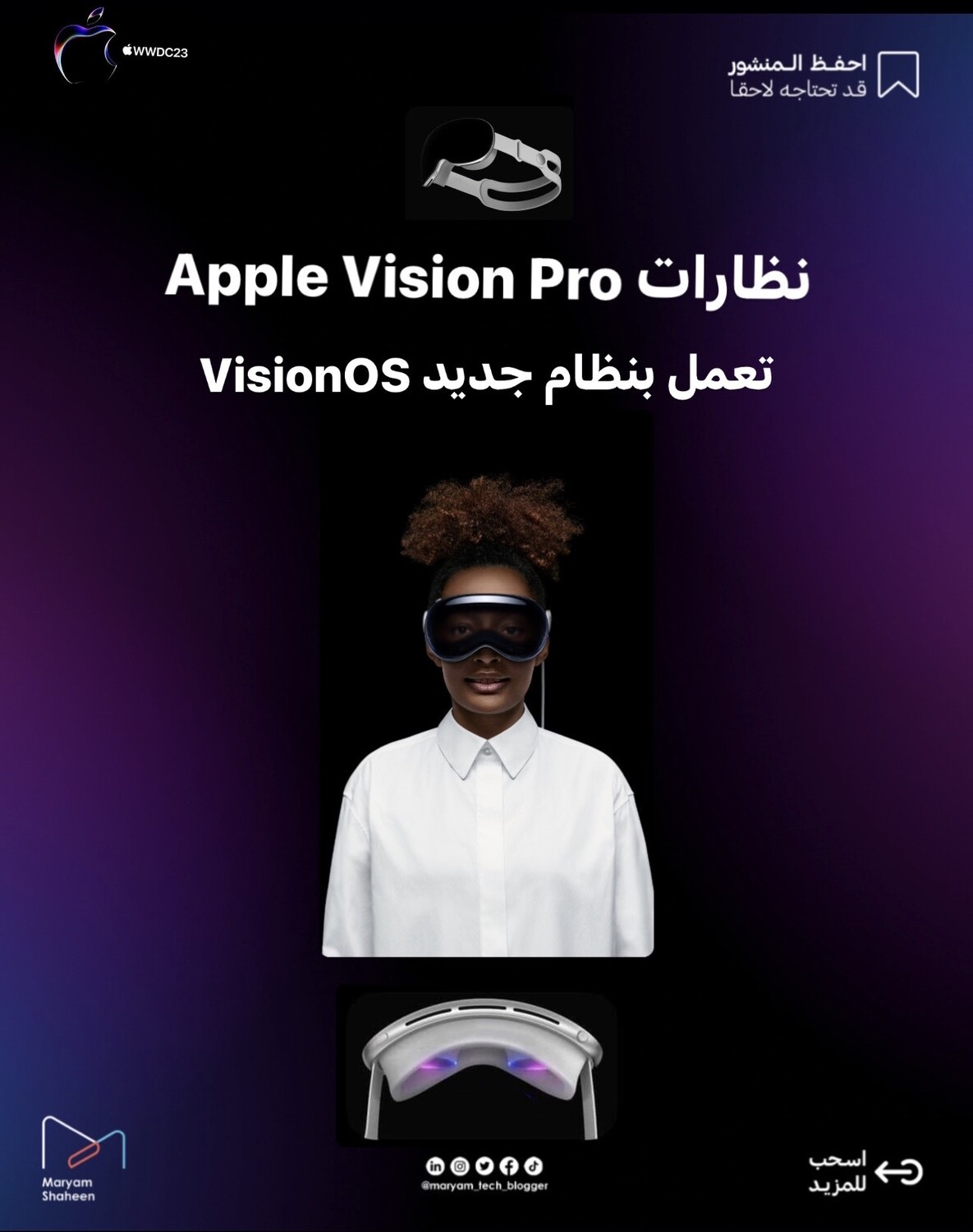 1️⃣ أبل تدخل عالم الواقع الافتراضي والمعزز VR/AR باعلانها عن نظارات Apple Vision Pro