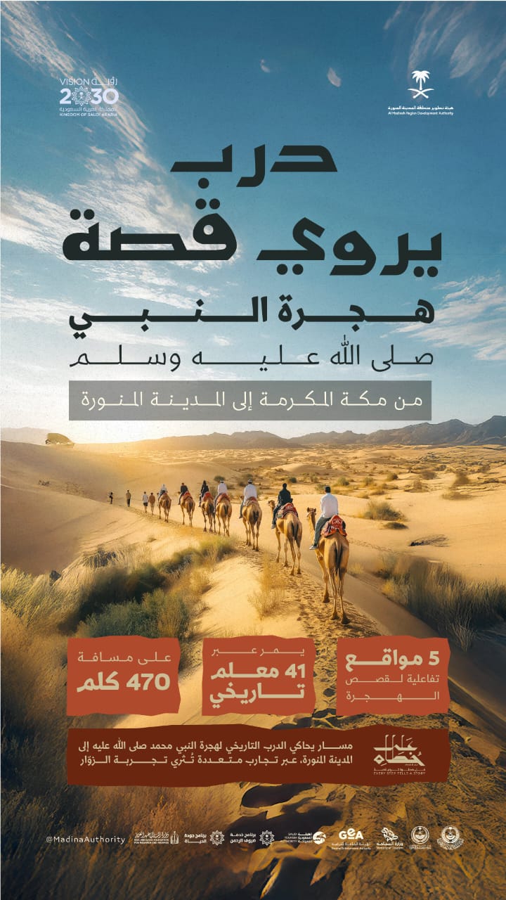 هذا المشروع يمتد على مسافة تتجاوز 470 كيلومترًا، ويتيح للزوار فرصة مميزة لتتبع خطوات النبي الكريم -صلى الله عليه وسلم- وزيارة المواقع التي ارتبطت بتلك الرحلة العظيمة.